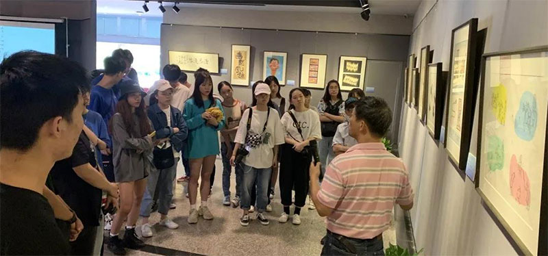 2019年9月19日下午,俞志达老师在四号楼一楼展厅为18动漫班的同学开展了一堂生动的专业面对面讲座。现场他向同学们介绍了每一幅展示在厅中的漫画作品,有趣的创作过程和绘声绘色的语言,使大家听的津津乐道。