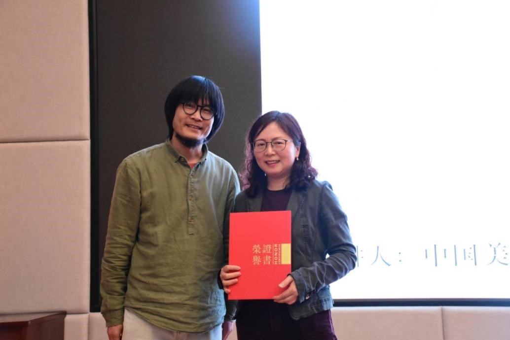美术系常务副主任李昌国为讲座嘉宾胡珂颁发荣誉证书。