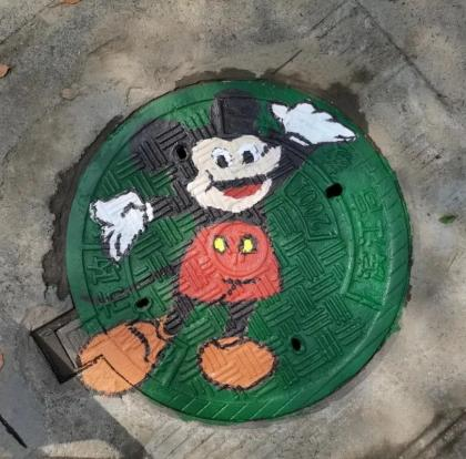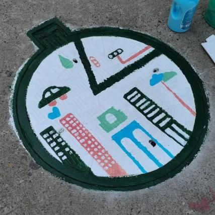 同学们顶着炎炎烈日,一双巧手、一支画笔、一盘颜料打造出一个个精妙绝伦的工艺品。经过三天的绘画,共完成61个井盖的涂鸦。下面我们一起来欣赏美术学子的优秀作品吧!
