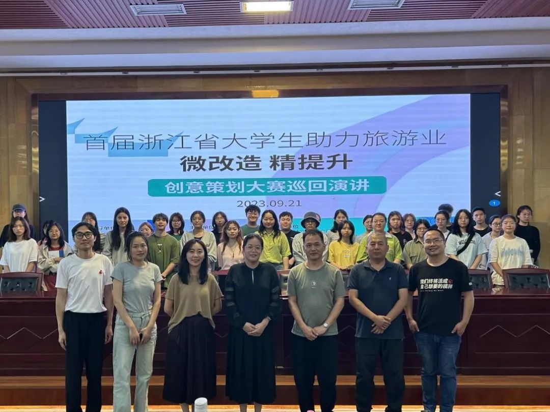 首届浙江省大学生助力旅游业“微改造 精提升”创意策划大赛巡回演讲旨在对首届大赛进行总结回顾,对第二届大赛进行宣传动员,同时宣扬大赛及“微改造 精提升”的理念。此次讲座反响热烈,气氛融洽,后续巡讲也即将在各校陆续开展。
