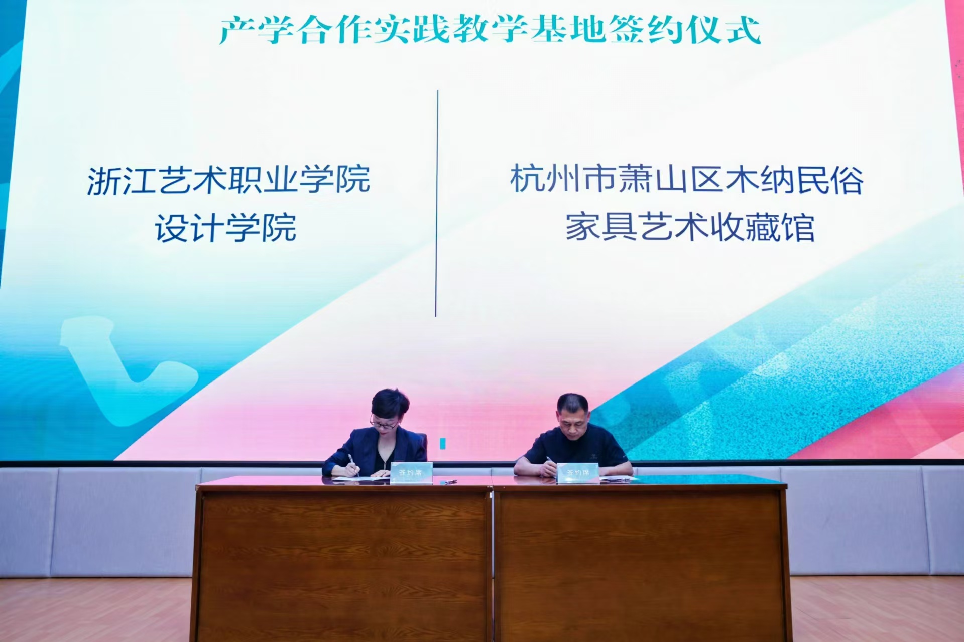 汪琳代表设计学院同校企合作企业签署《浙江艺术职业学院产学合作实践教育基地协议书》