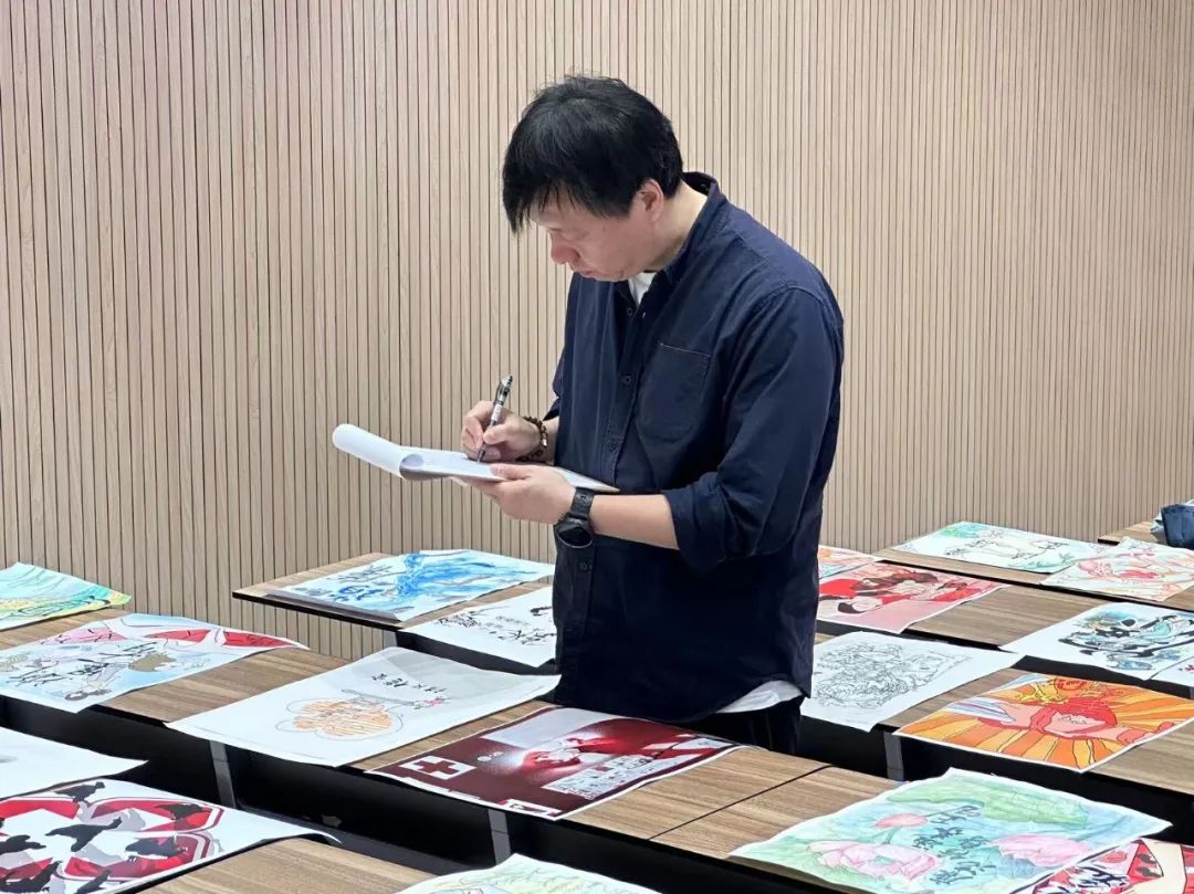 4月25日,针对此次学生专业基本功测试开展了相关作品评审工作,浙江省漫画家协会主席陶小明,副主席江健文,浙江机电职业技术学院副教授朱冬勇,设计学院副书记汪仕龙,副院长何佳玮,动漫设计教研室主任贾娜娜,专业带头人孙煜珑及全体专业教师参加评审工作。