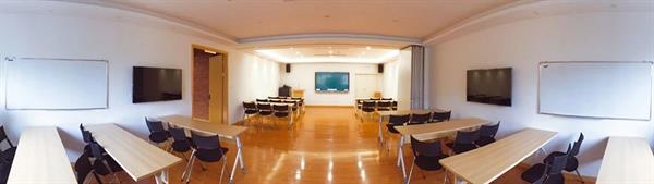 研讨室2:是一个可容纳36人使用的智慧互动教室。该研讨室配置了先进的大屏幕互动教学系统,小组讨论的结果能够通过手机或笔记本电脑同屏到大屏幕,教师可以灵活地进行不同屏幕内容的推送,在这里您可以尝试翻转课堂等先进的教学方法,学术争鸣、脑力激荡就靠它啦!