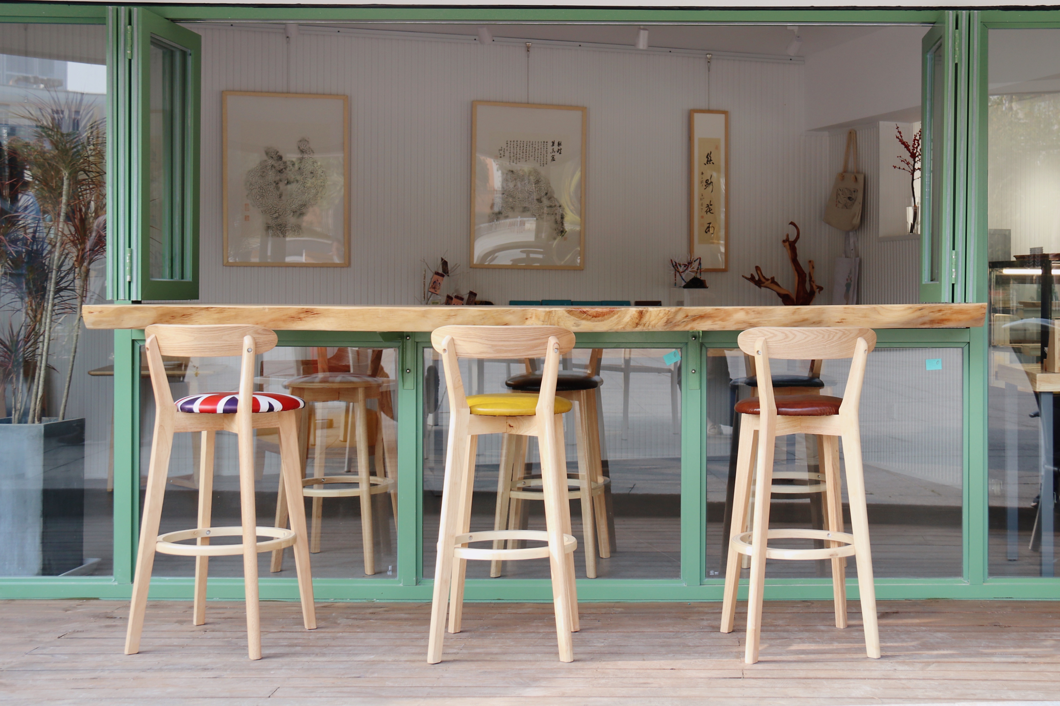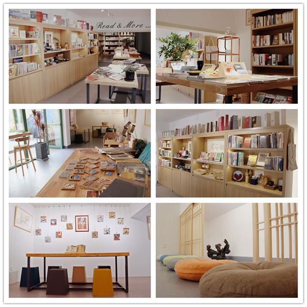 开放式吧台提供了室内与室外交流的可能性,路人可以稍作停顿,以另一种方式阅读,与街角便利店有异曲同工之妙。
