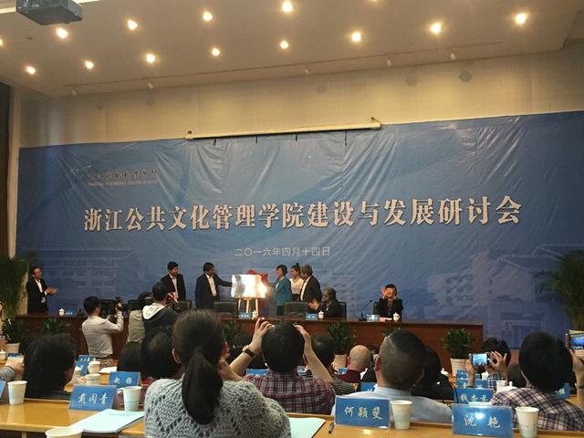 4月14日,浙江艺术职业学院举办了浙江公共文化管理学院挂牌仪式并举办研讨会。挂牌仪式由浙艺党委书记朱海闵主持,浙江省文化厅厅长金兴盛出席讲话,文化部公共文化司副司长陈向红、中央文化管理干部学院副院长李春华致贺词,浙艺院长张建国现场介绍了成立浙江公共文化管理学院的背景及未来发展目标等,之后共同为“浙江公共文化管理学院”揭牌。