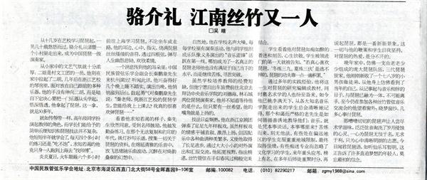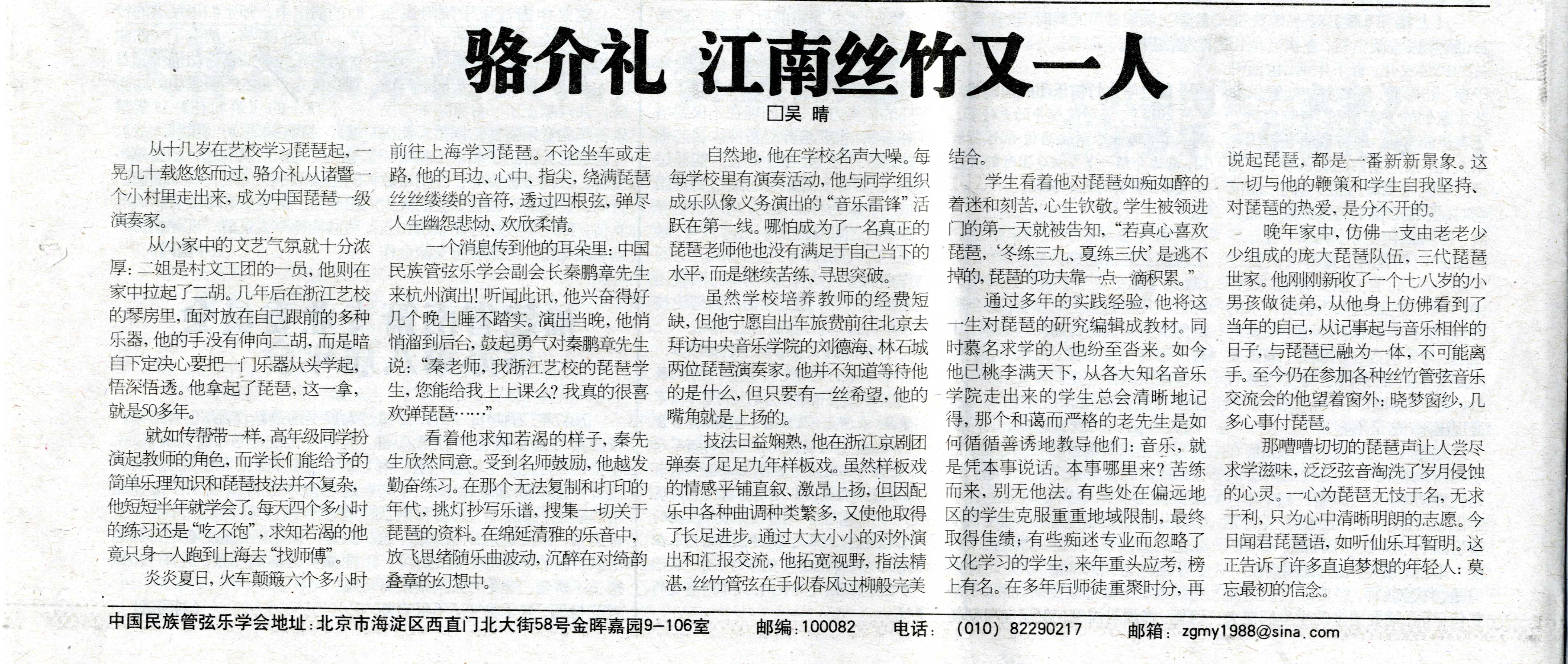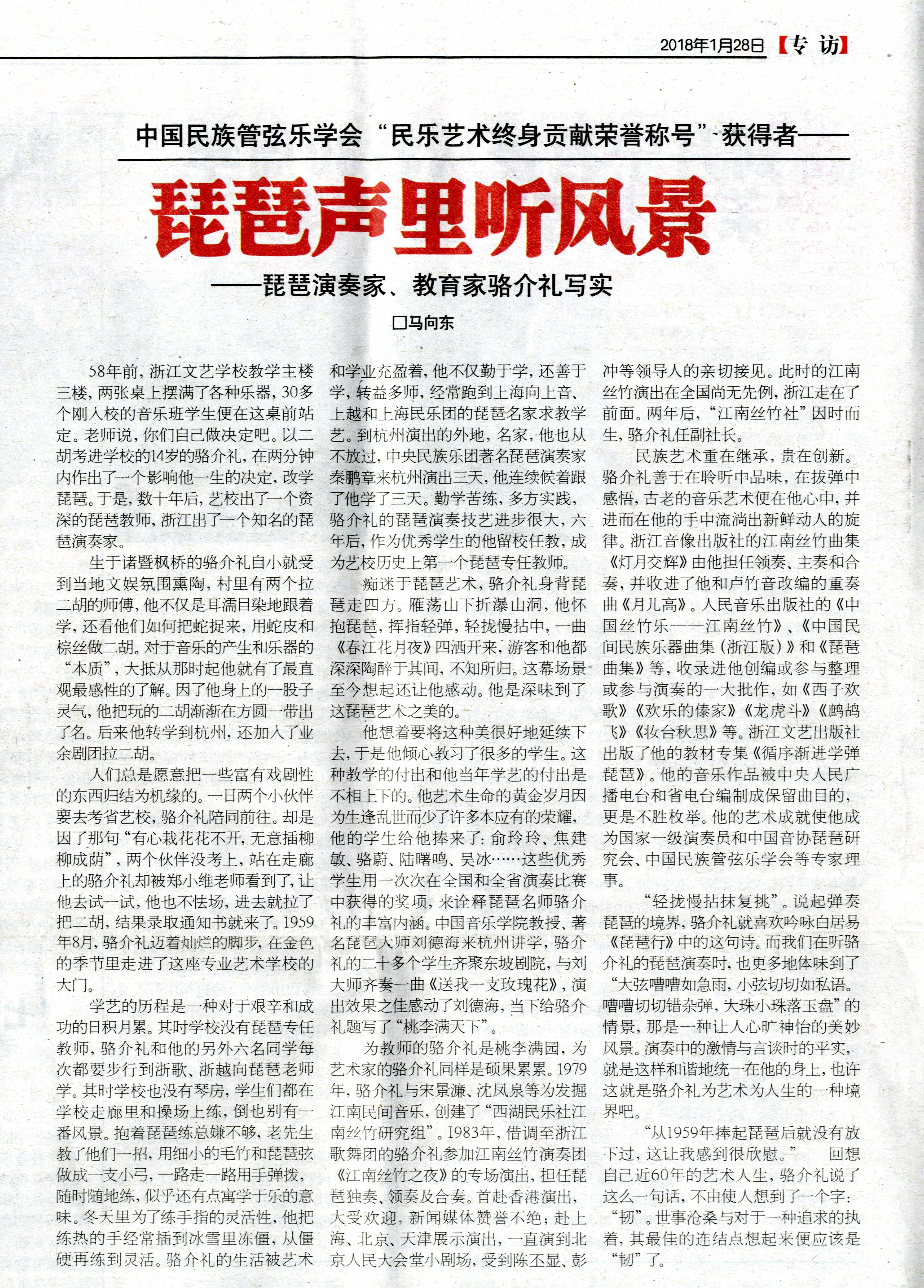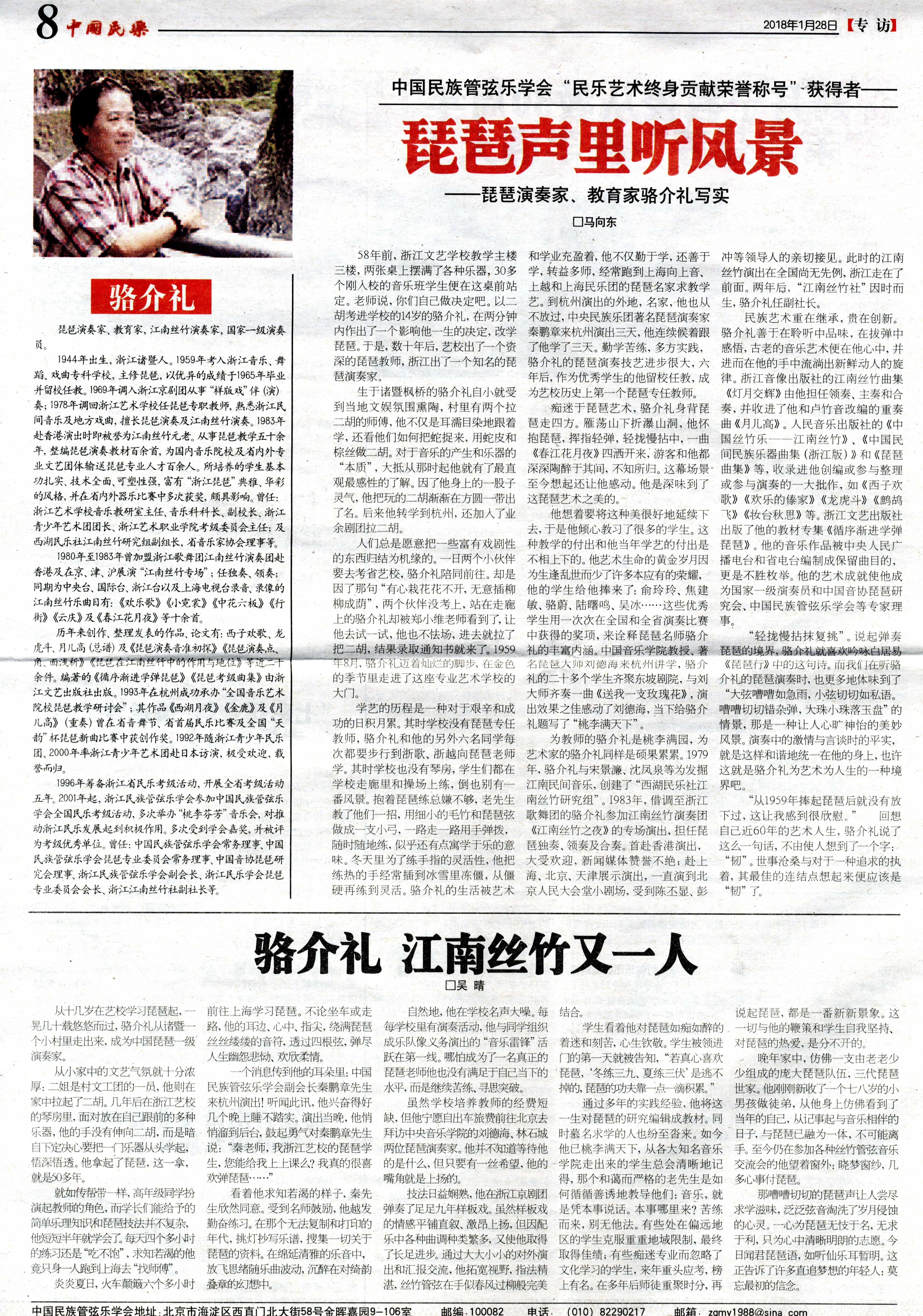 中国民乐报讯:琵琶声里听风景——江南丝竹传承人、琵琶演奏家、教育家骆介礼写实