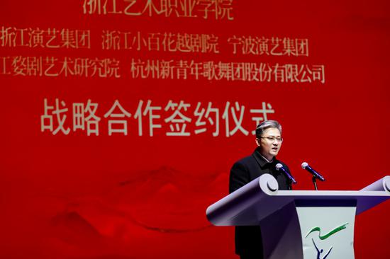 当晚,浙江艺术职业学院与浙江演艺集团、浙江小百花越剧院、宁波演艺集团、浙江婺剧艺术研究院、杭州新青年歌舞团股份有限公司分别签订战略合作协议,在浙艺推进“双高”建设的背景下,在新一年浙艺将与五大院团协力开展产教融合、校团共建,高校与院团将优势资源共享,创新艺术人才培养合作机制,持续培养业务水平高、综合能力强的艺术表演人才,为文化浙江和“重要窗口”建设作出更多贡献。