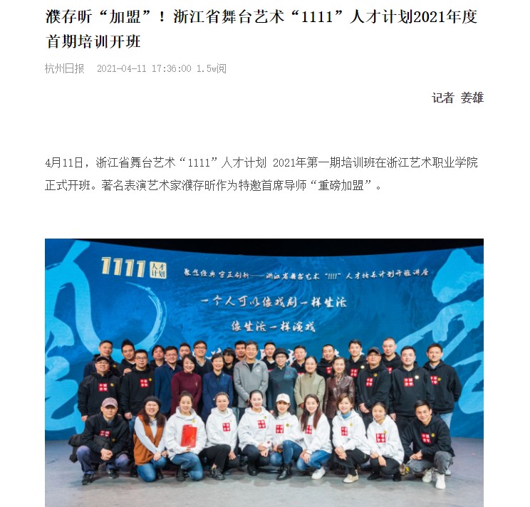 杭州日报:濮存昕“加盟”!浙江省舞台艺术“1111”人才计划2021年度首期培训开班