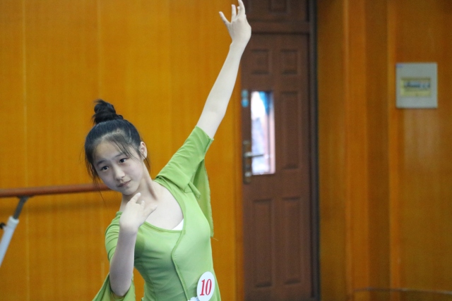 舞蹈表演女生考场竞争最为激烈,在身高、臂长、上下身比例测量后,分组进行了软度测试、弹跳力测试,单独进行自选舞蹈表演和动作模仿。民族舞、现代舞、古典舞……考生用各种舞姿,展示着她们的舞蹈功底。