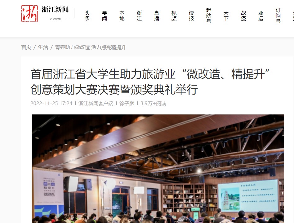 浙江新闻:首届浙江省大学生助力旅游业“微改造、精提升”创意策划大赛决赛暨颁奖典礼举行