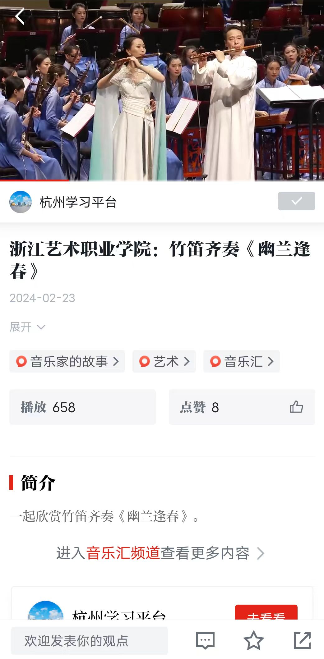 学习强国全国平台:浙江艺术职业学院:竹笛齐奏《幽兰逢春》