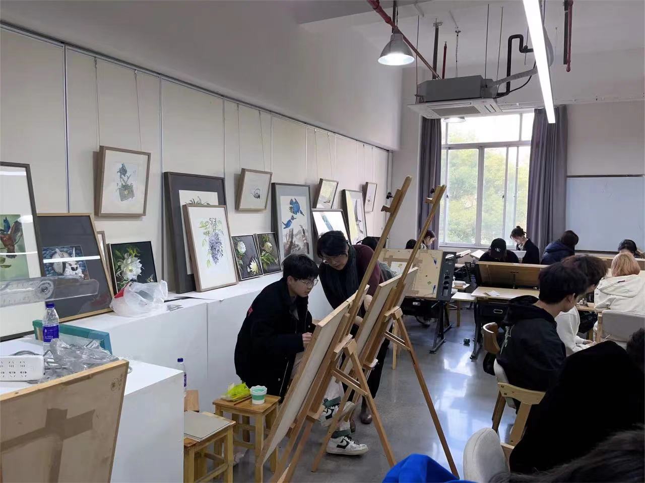 《展示绘画表现》课程中,黄茜以讲授、现场示范、小组讨论的形式,讲述了绘画的专业技巧,带领学生更加深入了解插画设计的特点与风格,强化了空间和色彩的专业技能。