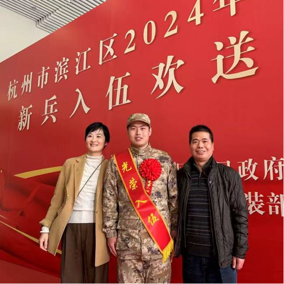 当日,在杭州市拱墅区参加征兵仪式的还有2023级环境艺术设计2班的殷天赐,他平日里与同学们相处融洽,在学习上积极进取,生活中严格自律,乐于助人、无私奉献,获得了老师和同学们的一致认可。