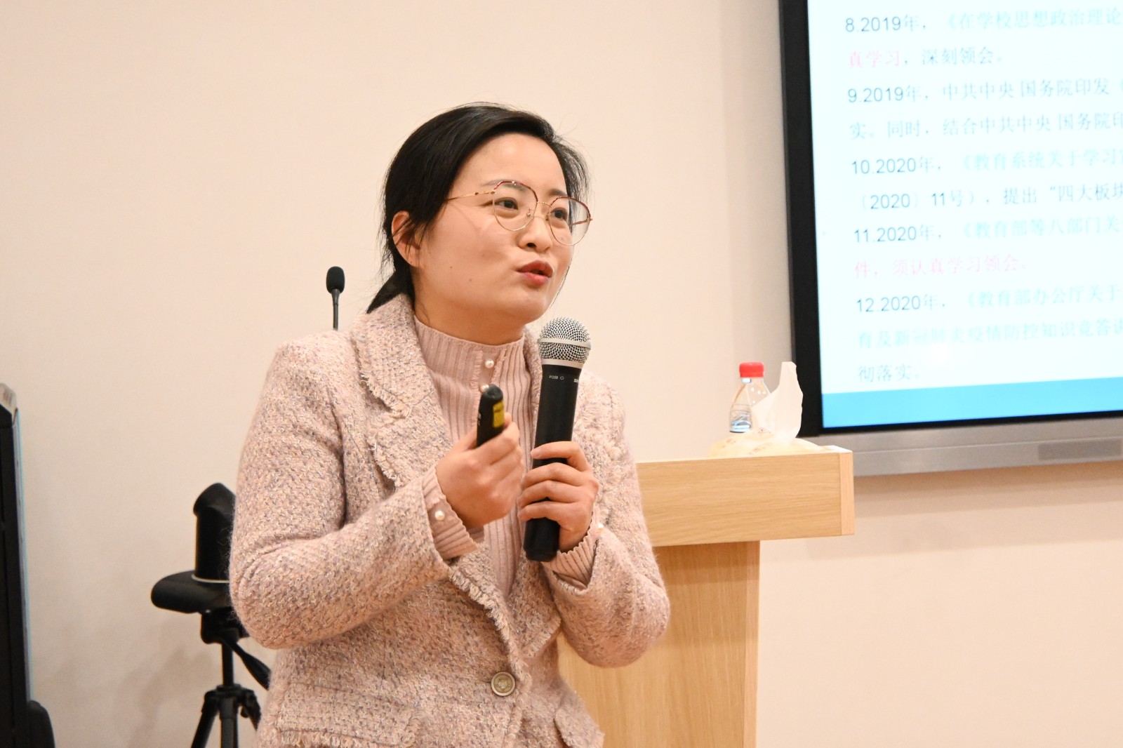 校党委副书记夏开堂对大赛进行了现场点评和活动总结,浙江省第九届高校辅导员素质能力大赛一等奖获得者、浙江工业职业技术学院机电工程学院主管助理郭菲菲对选手的解答思路和技巧进行了现场指导。