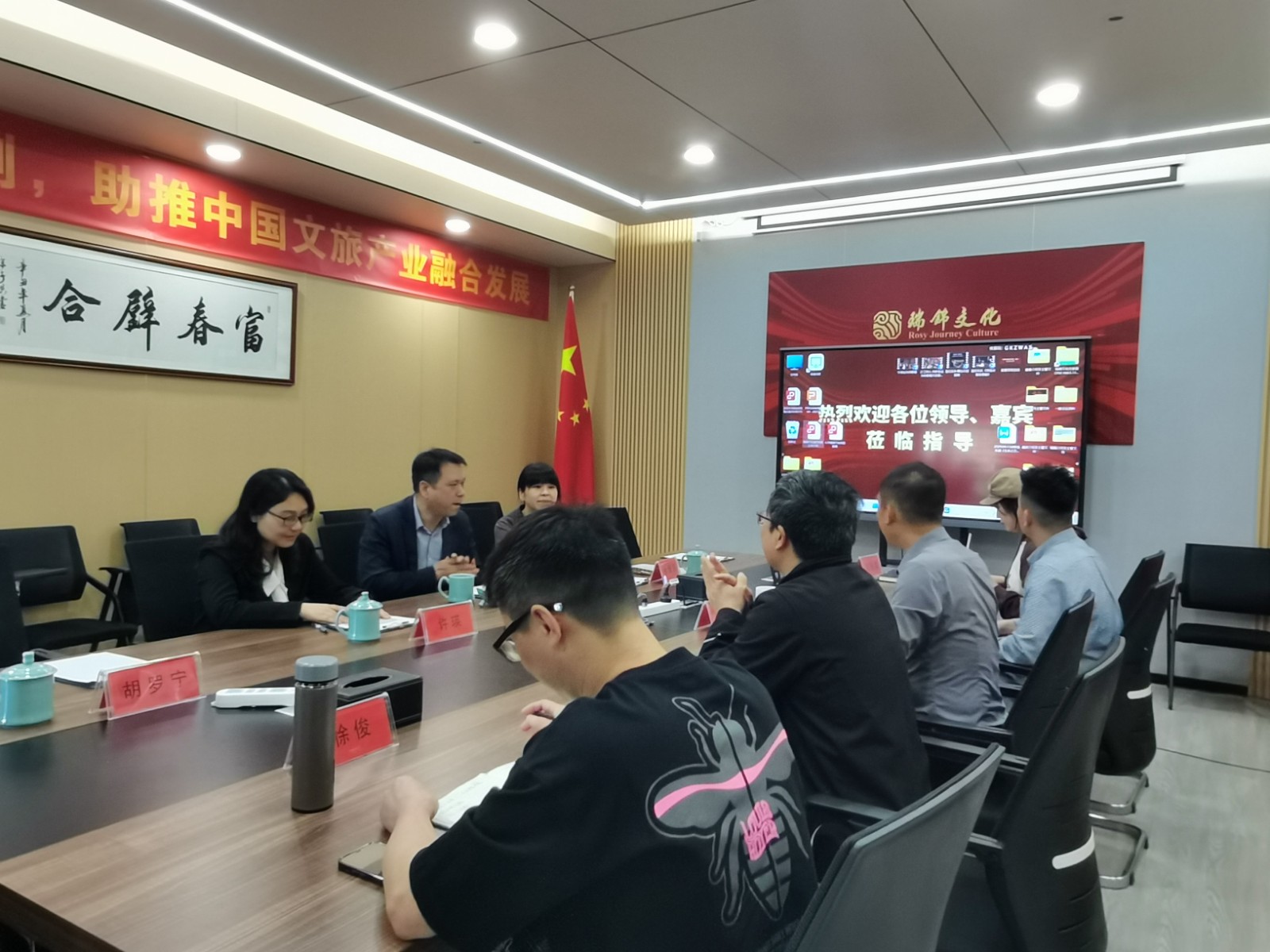 会后一行人参观了公司的文化走廊、钱塘(国际)音乐剧数字艺术空间,深入了解了公司将传统文化与现代科技相结合的创新实践,感受到公司浓厚的文化底蕴和团队精神。