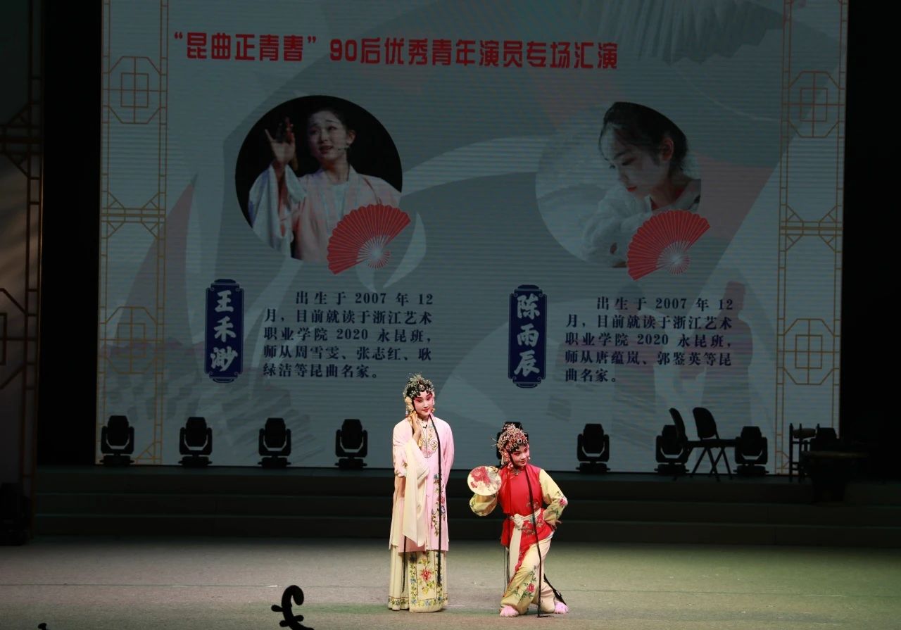 5月4日晚,“05后”永昆班学生王禾渺、陈雨辰参演的剧目《牡丹亭·游园》亮相第九届中国昆剧艺术节闭幕式暨“昆曲正青春”90后优秀青年演员折子戏汇演,王子翰、徐乔焕、徐炳诚、余雁南4名学生作为幕后乐队共同参与演出,同学们在一招一式、一句一曲间演绎青春昆曲的最美风貌。