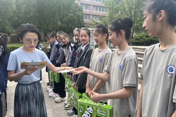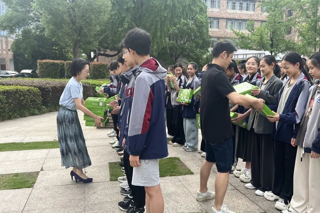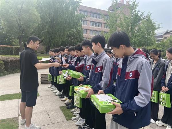 郑吟、包峥剡、孙天添为同学们颁发祝福礼包,小小的祝福礼包不仅包含了学校对同学们的祝福和鼓励,更承载了学校对同学们未来成长的期待和关注。