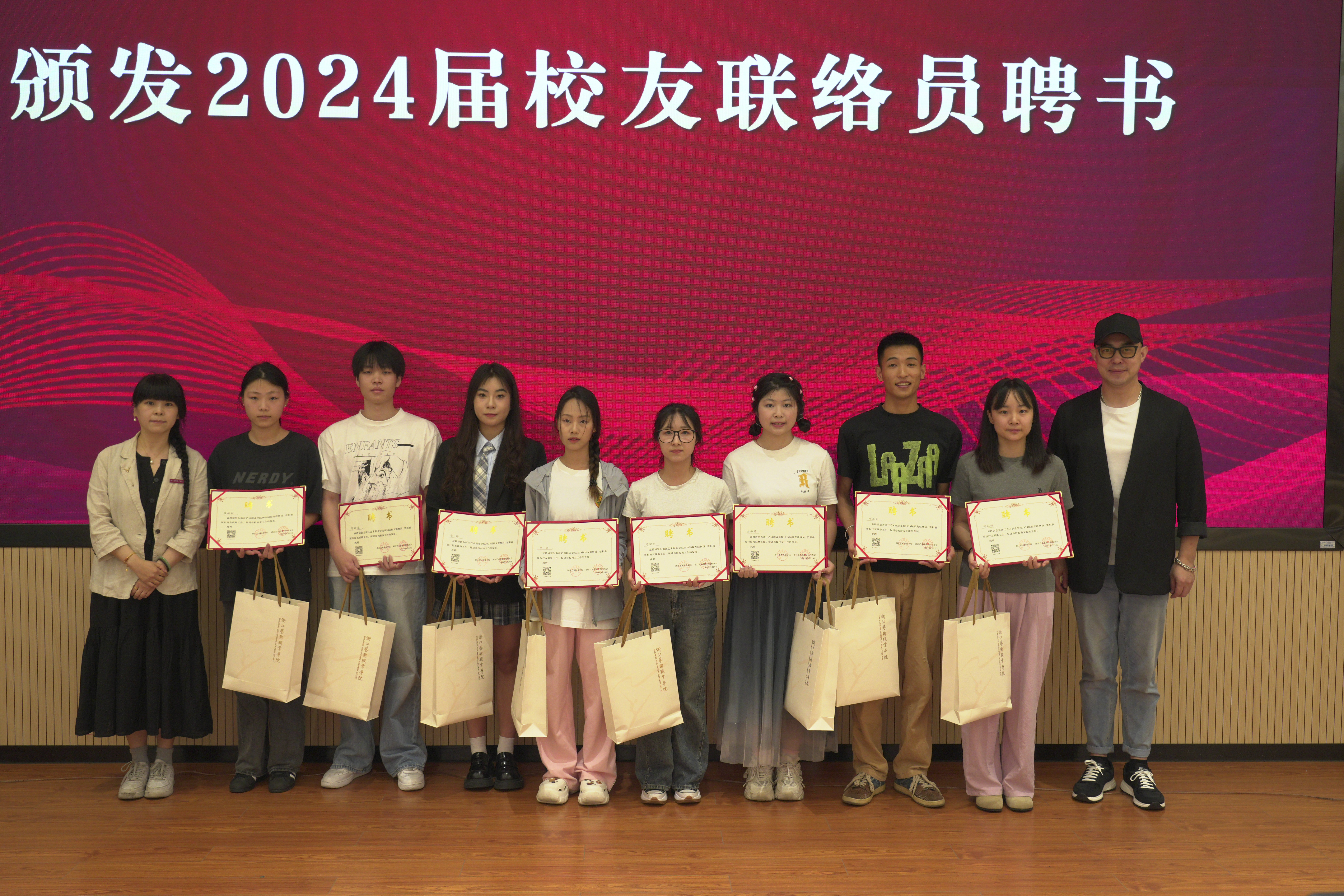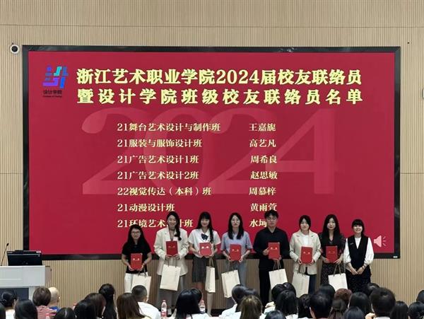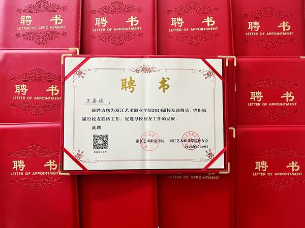 经各二级学院的精心选拔和推荐,产学合作处审核,全校公示,最终确定了新一届校友联络员的名单,并于5月正式印发了《关于公布浙江艺术职业学院2024届校友班级联络员的通知》。此次共有43名优秀的应届毕业生脱颖而出,成为新一任校友联络员,他们将肩负起连接校友与学校的重任。产学合作处与浙艺校友会共同精心设计了校友联络员聘书及精美的纪念品。在2024届毕业典礼上,学校隆重举行了新一届校友联络员的聘任仪式。这一仪式不仅是对他们过去努力的肯定,更是对他们未来工作的期许。