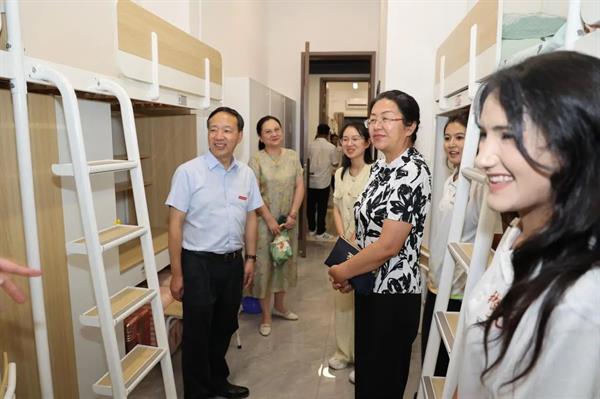 9月9日傍晚,校领导深入宿舍走访慰问,细心询问了同学们的生活起居情况,耐心解答了大家提出的疑问,并送上了亲切的问候和祝福,宿舍里洋溢着温馨与和谐的氛围。
