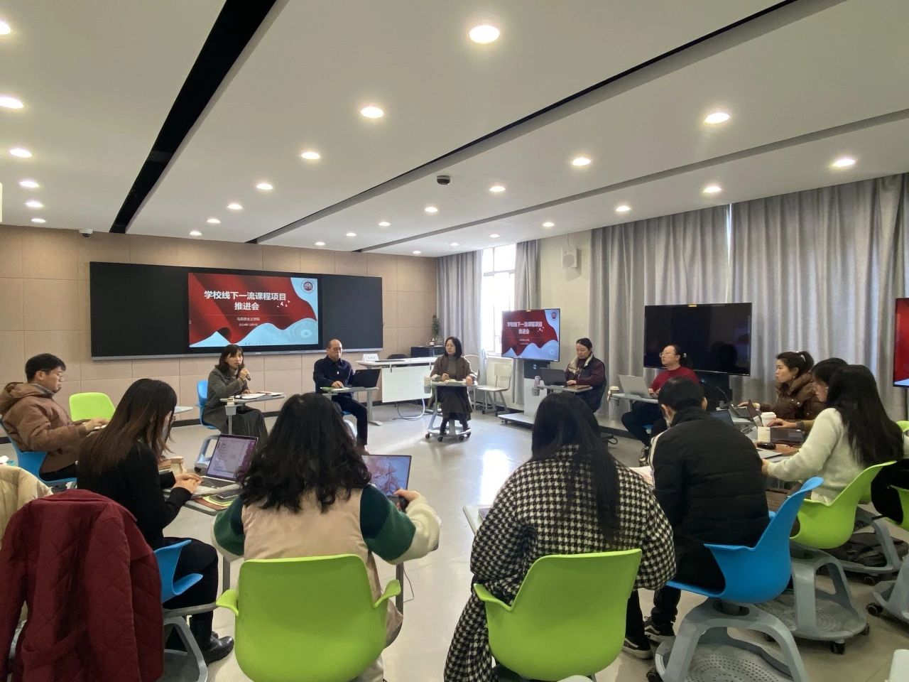 为确保学校“三百计划”的深入实施,全面深化教育教学改革,提升马克思主义学院内涵建设水平,12月9日,马克思主义学院召开学校线下一流课程项目推进会,本次会议特邀浙江商业职业技术学院马克思主义学院院长、国家精品在线开放课程《毛泽东思想和中国特色社会主义理论体系概论》负责人张国宏教授来校指导。马克思主义学院副院长胡卓群主持会议,马院全体教师参会。