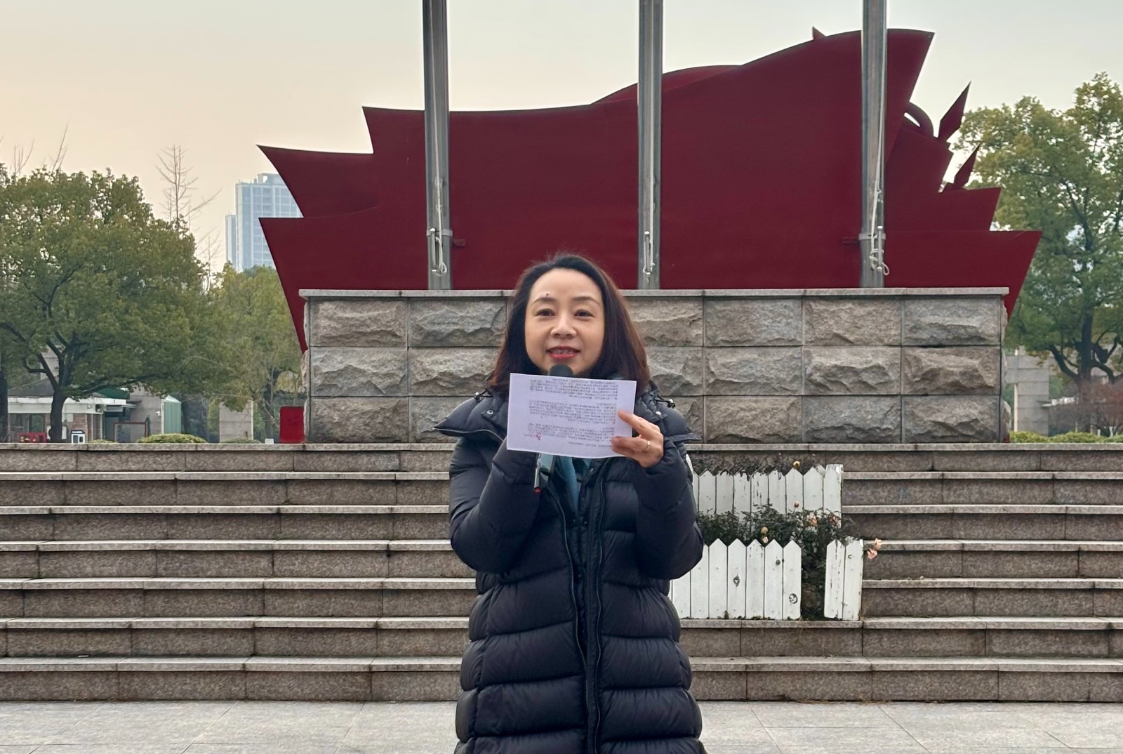 国旗护卫队迈着整齐有力的步伐护送国旗走向升旗台。随着激昂的国歌声响起,五星红旗冉冉升起,全体师生庄严肃立,向国旗行注目礼,高唱国歌。这一刻,爱国之情在每个人心中激荡,也为新学期注入了满满的正能量。