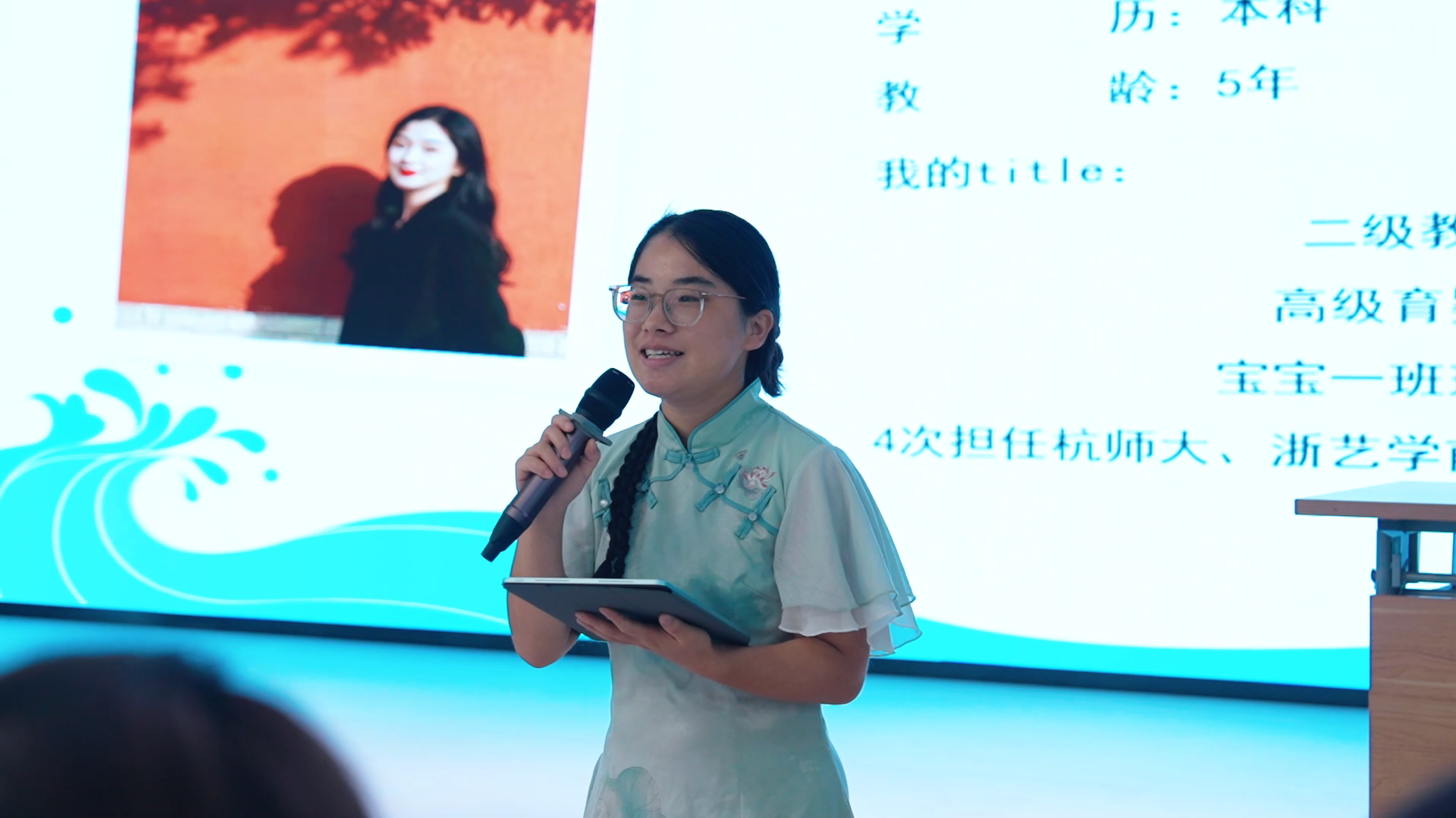 钱塘实验幼儿园园长陈英及3位教师代表与新生们进行了亲切交流。她们结合自身在专业选择、大学学习阶段的亲身经历,娓娓道来,拉近了与同学们的距离。3位老师轮流分享了入职后与孩子们相处的温暖教育故事,生动展现了幼儿教师工作的专业性与幸福感,让新生们对未来的职业角色有了更具体、更感性的认知。