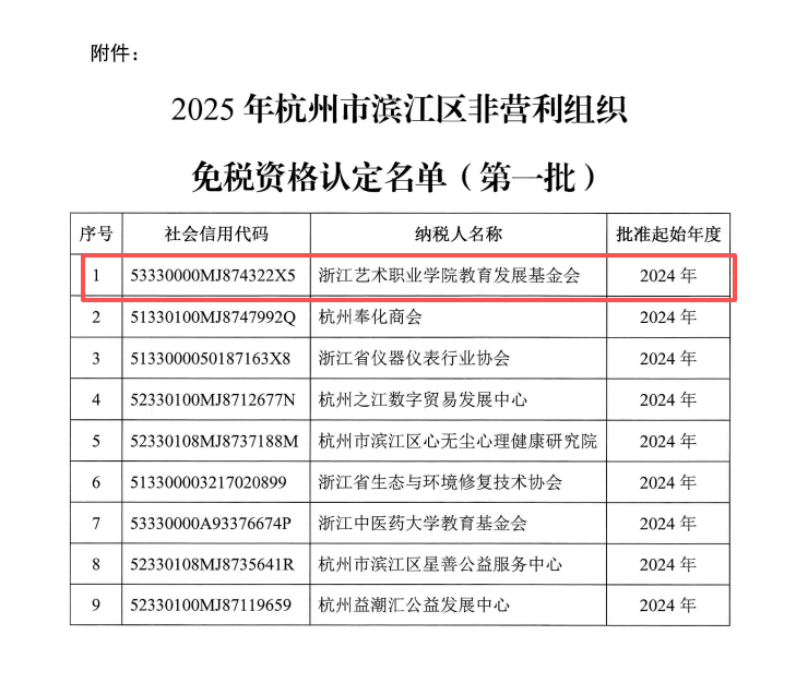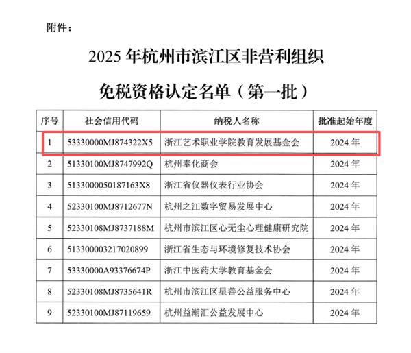 浙江艺术职业学院教育发展基金会获批2025年度非营利组织免税资格
