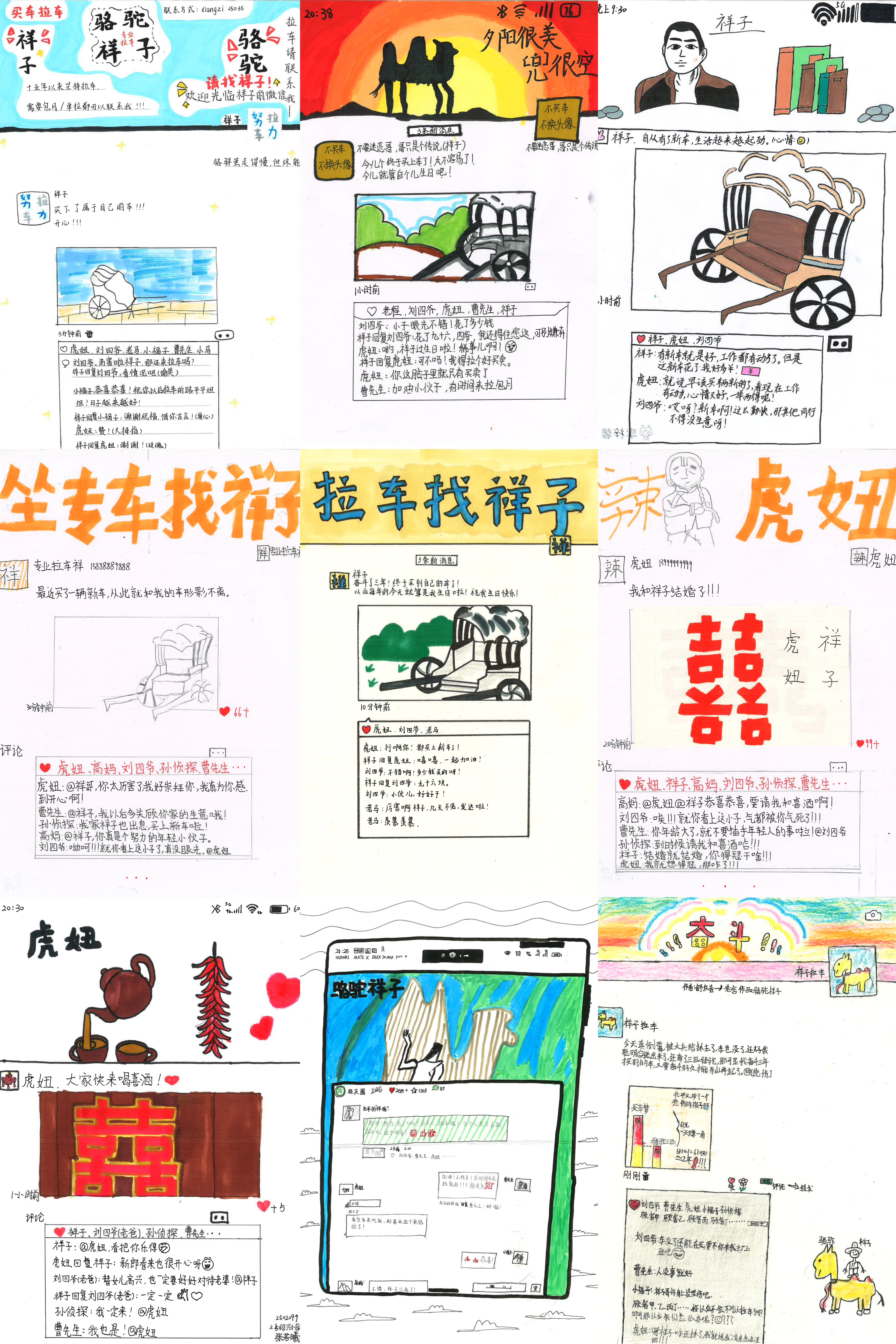 初一年级:创意出圈,《骆驼祥子》朋友圈超吸睛