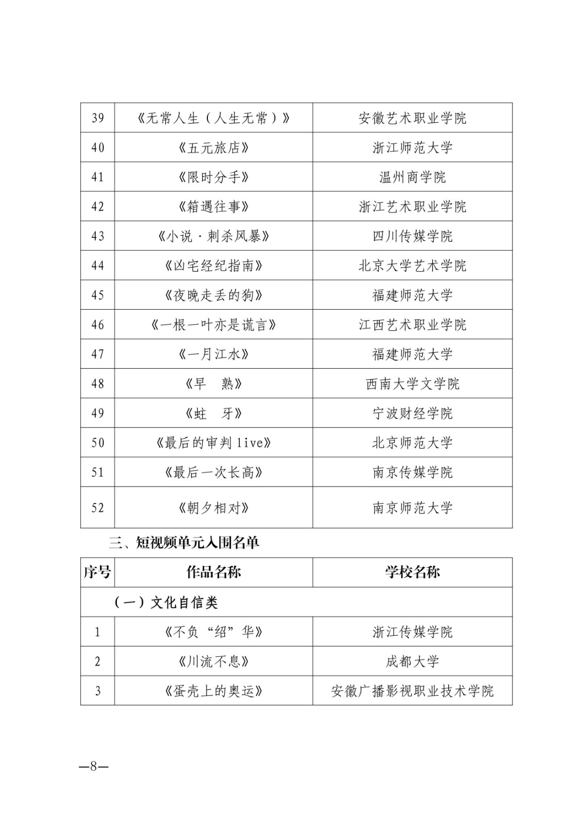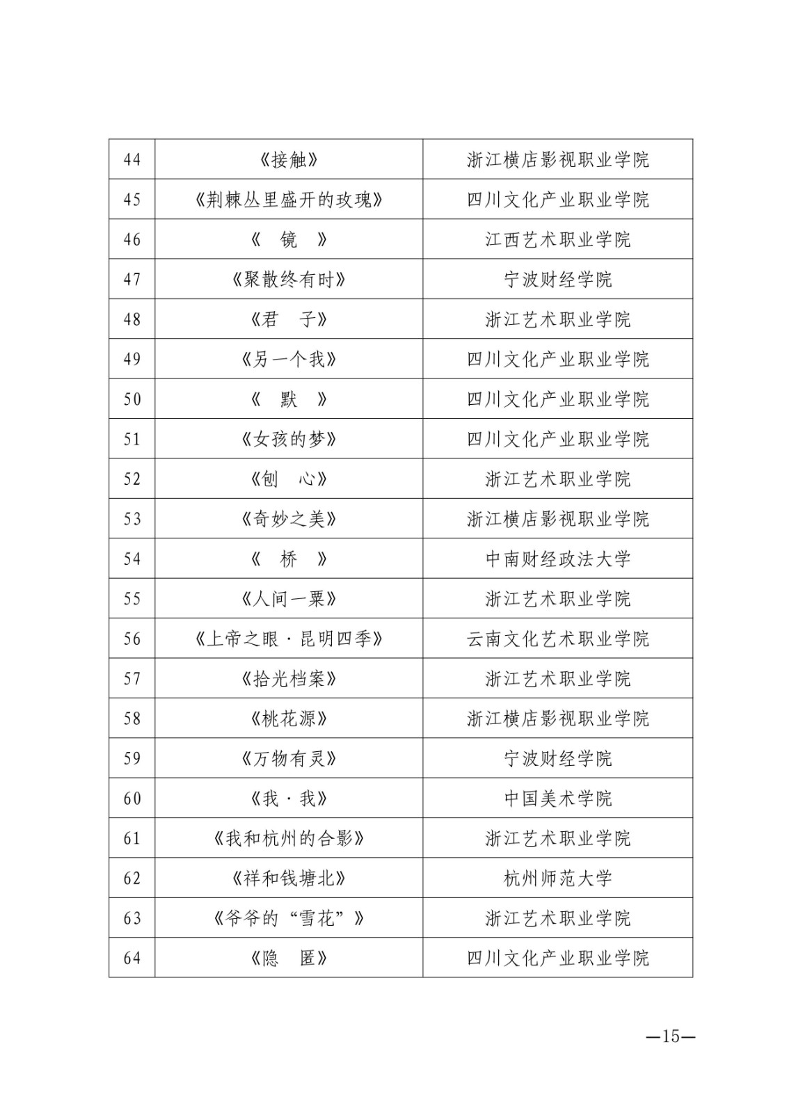 由中国艺术职业教育学会主办的第四届浙艺金鹄电影节暨原创影像大赛于2021年11月20日—11月27日在杭州举行。本次大赛总共收到参赛作品1129件,其中短片单元395件、剧本单元166件、短视频单元219件、摄影单元349件。经专家评审组初评后,共有303件作品入围,入围率27%。现名单公示完成,最终入围名单如下,特此公告。