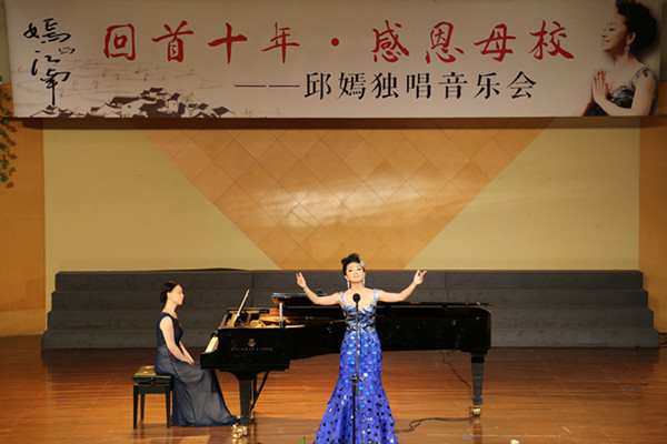 5月26日晚,浙江艺术职业学院校友邱嫣荣归母校,在音乐厅举办“嫣与江南——回首十年感恩母校”邱嫣独唱音乐会,唱响从艺之歌、感恩之歌。中国人民解放军海军军乐团副团长兼艺术总监王慧星、原省音协主席晓其、我院领导和老领导以及音乐界专家、音乐系师生等到场聆听音乐会。国家一级演员、浙江省声乐辅导团副团长胡素银主持音乐会。
