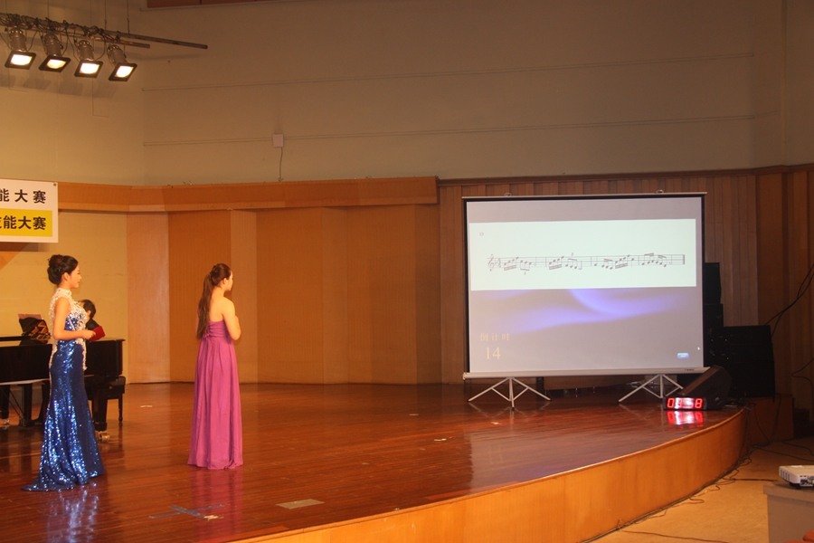 在经过不到两小时的休整之后,第二轮比赛于晚上六点正式开始。此轮比赛内容为“专业拓展能力(合唱排练)考查”,选手抽签决定排练曲目(均为二声部合唱歌曲选段),在制定场所独立准备1小时,而后在赛场阐述排练构思并组织合唱队员排练15分钟,重点考查选手对声乐作品的理解和分析能力、排练指挥等方面的能力以及综合专业素养。合唱队员全部来自我院音乐系的学生,在紧张的大赛现场有如一抹鲜艳的亮色点缀了舞台,温婉的歌声恰到好处地配合了选手的现场发挥。各参赛选手在此轮比赛中也可谓是拼尽全力,将自己除了演唱技能之外的另一面才艺充分展露给现场评审和观众。按照“专业拓展能力(合唱排练)考查”满分100分折合总成绩的15%评分权重,再结合第一轮的比赛成绩,选手们的最终参赛成绩尘埃落定。最终,来自浙江艺术职业学院的选手王璟(指导教师:郭义江)、应梦霞(指导教师:钱思舒)、李丽包揽前三名(指导教师:钱思舒),浙江纺织服装职业技术学院的潘潜峰、浙江横店影视职业学院的林雯雯分获第四、第五名。