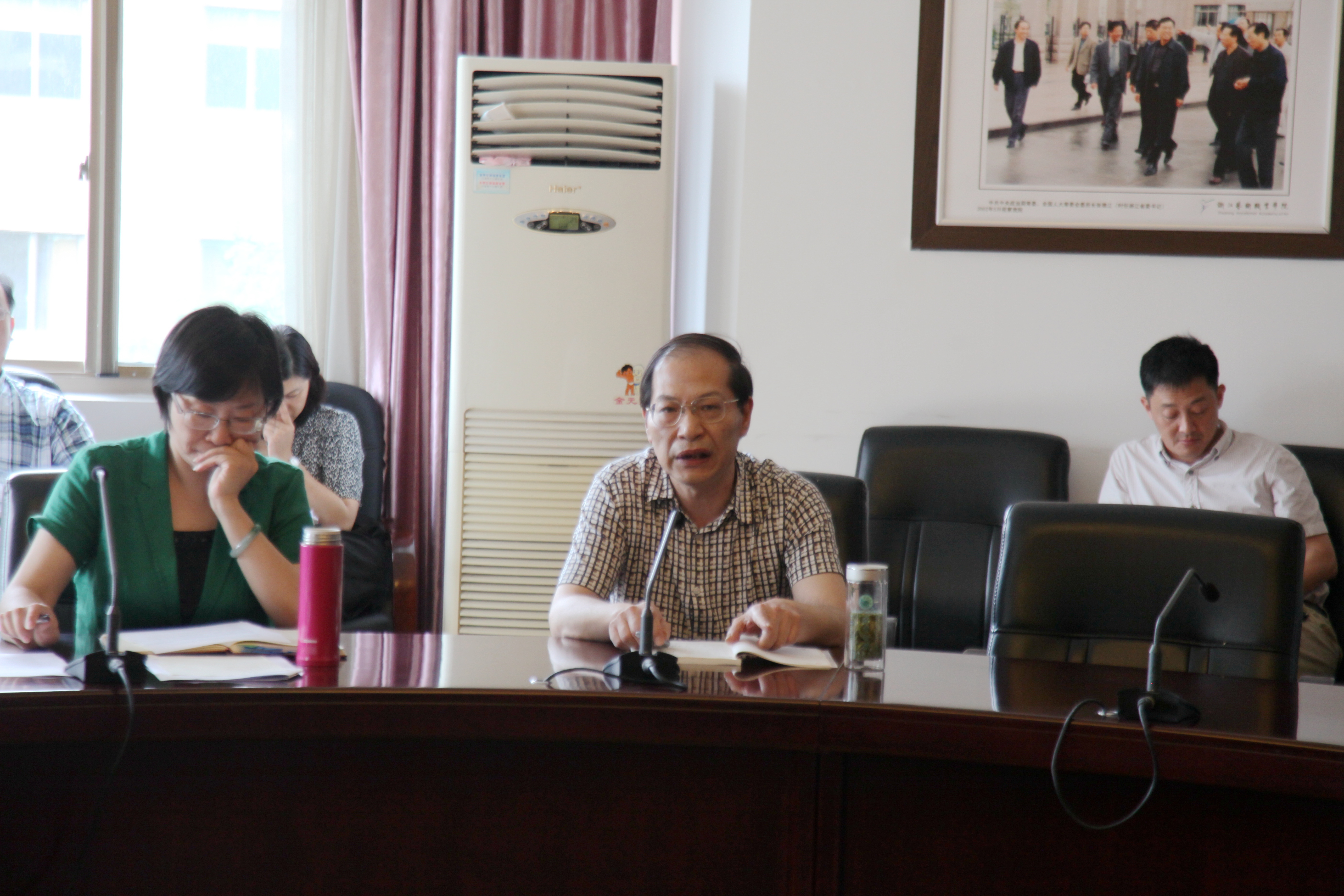 6月29日下午,浙江艺术职业学院党委理论中心组召开2016年第8次扩大学习会,重温毛泽东同志《党委会的工作方法》,深入学习贯彻习近平总书记关于“学习毛泽东同志《党委会的工作方法》,加强党委(党组)领导班子建设”的重要批示精神。院党委班子成员、副处以上中层干部参加会议。学院党委书记朱海闵主持会议。院长、党委副书记黄杭娟的从时代背景、主要内容、基本思想和重要意义等方面作了导读。