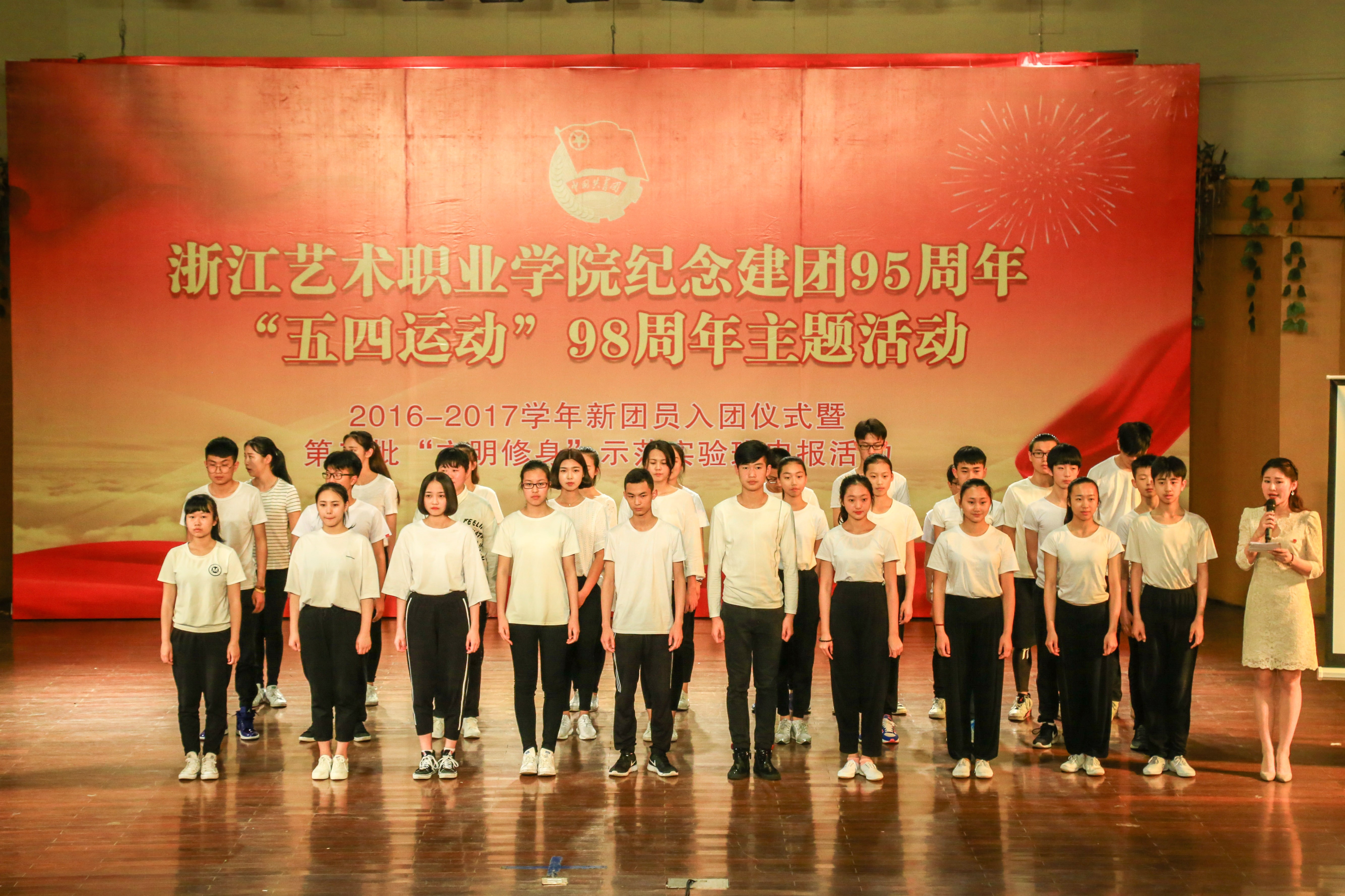 54日晚,浙江艺术职业学院纪念建团95周年暨“五四运动”98周年主题活动在音乐厅隆重举行,学院党委委员、副院长夏开堂及学校相关职能部门、各系党总支负责人出席,院系两级团学组织负责人、学生党员、团员代表等400余人参加活动,他们以热情昂扬的姿态迎接这个具有光荣意义的日子。