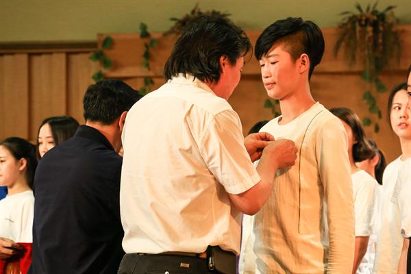 “我们是五月的花海,用青春拥抱时代……”,20162017学年新团员入团仪式在《光荣啊,中国共青团》歌声中拉开帷幕。院团委书记郑吟宣读新团员名单,作为即将成为中国共产主义青年团的新鲜血液,他们意气风发。六系党总支负责人亲切地为新团员代表佩戴团徽,他们面向党旗、团旗庄严宣誓,在这一刻,他们被赋予团员的责任,铭记要以共产主义接班人的使命要求自己,做好党的助手和后备军。胸前的团徽闪烁着光辉,引领着他们的青春。音乐系16级管弦班金佳乐同学代表新团员表态,表达了对共青团事业的热爱,表示在加入团组织后要珍惜团员身份,勇担责任,丰富自身,奉献社会。