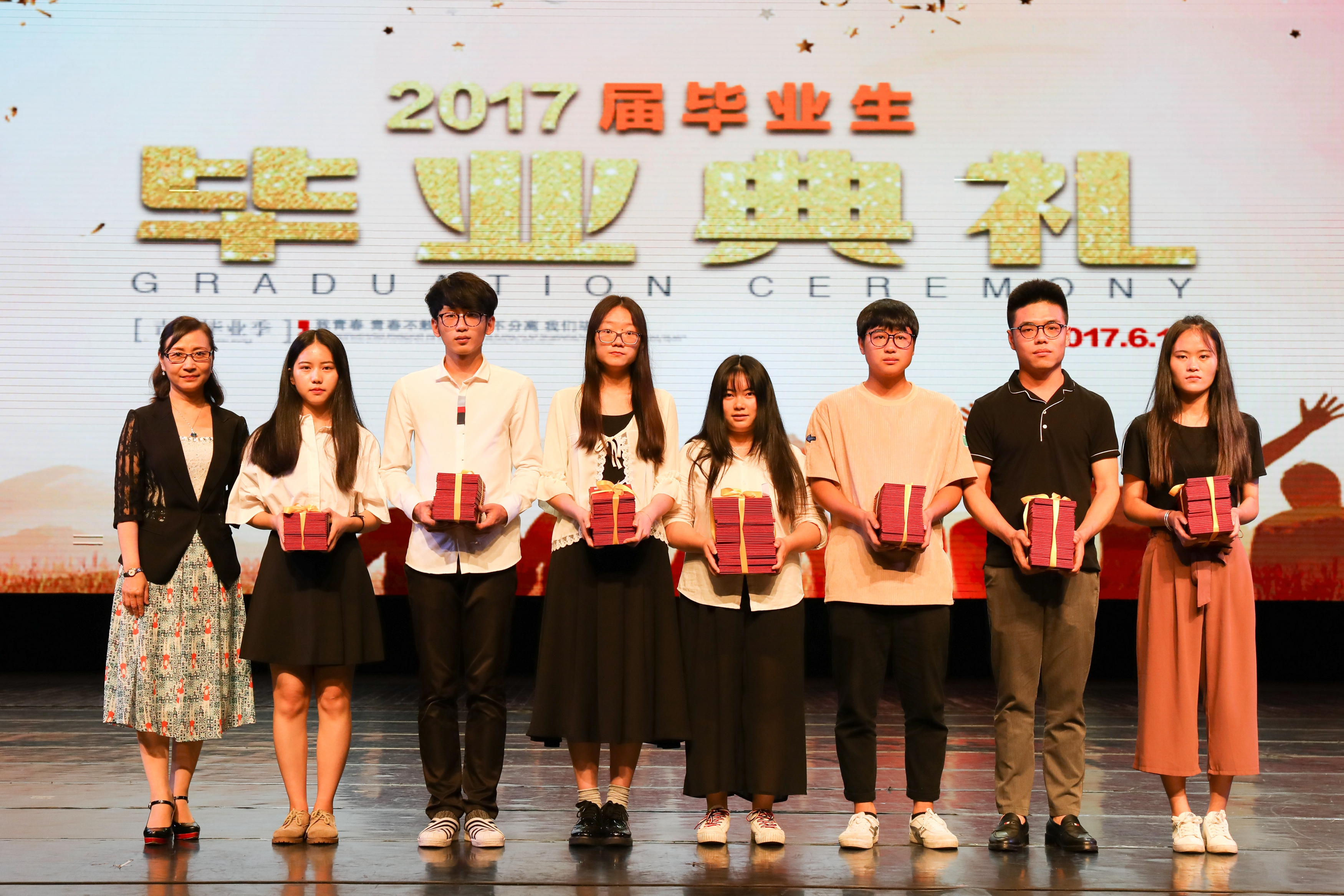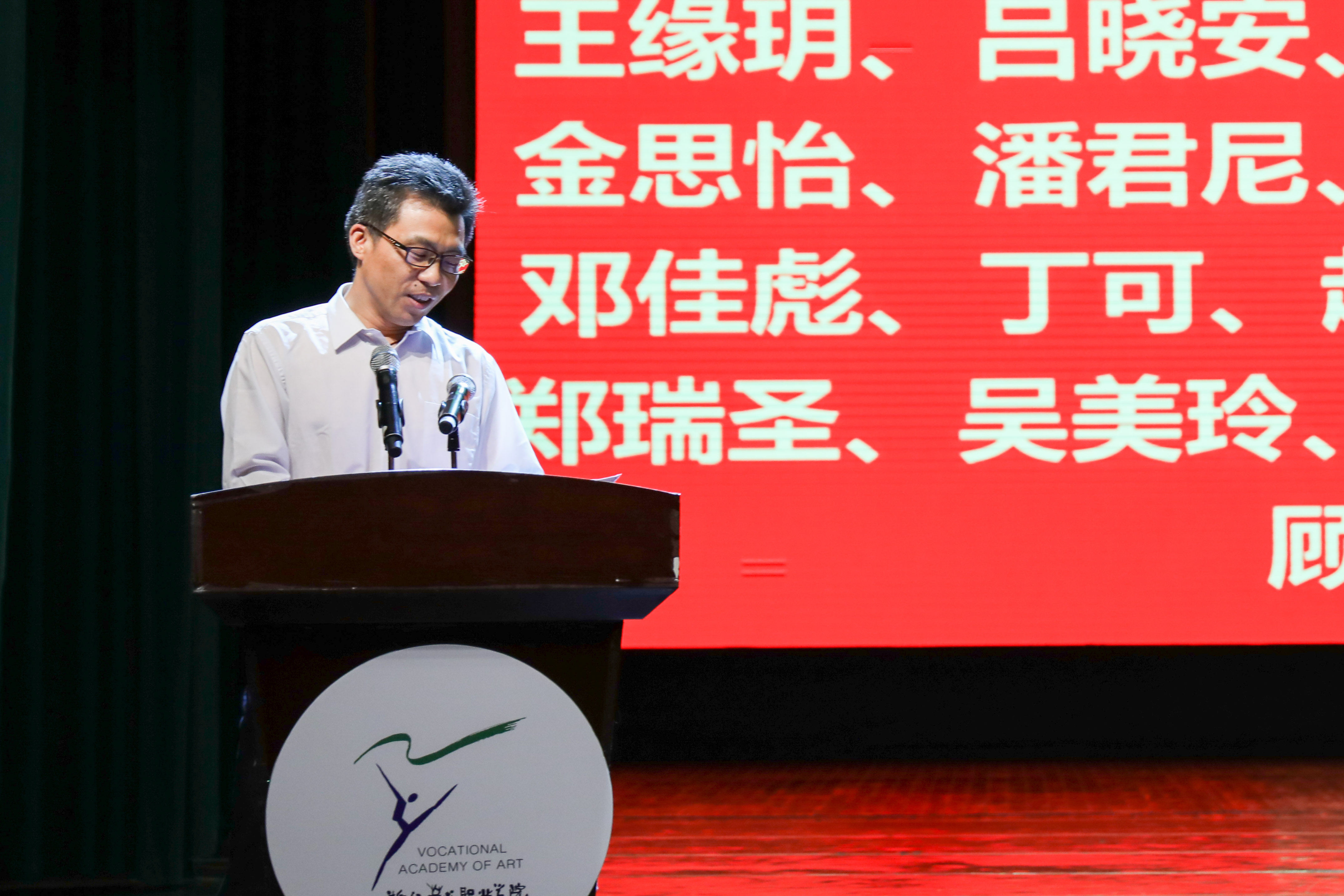 院领导黄杭娟、章轲、沈恒、夏开堂、徐芳、沈军甫,以及各系部负责人和班主任、任课教师、辅导员们都来了,这么多老师集体来为毕业生送行。偌大的实验剧场座无虚席,过道也满满都是人。