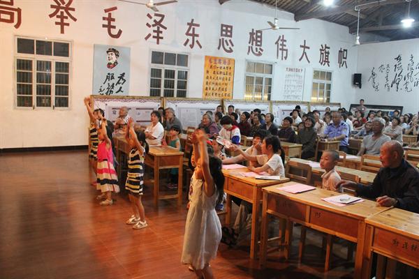 利民村空气清新,民风淳朴,大大的水车,清澈的茜溪,一面面不同于城市的房屋石墙等别样的风景令人陶醉,绵绵细雨更是增添了几分江南韵味。同学们刚下车,就忙着排练自己的节目,这边空地是健美操的踢踏,那边角落是流行舞的摇摆,舞台前是男生蒙族风的潇洒,后台是女生的维族节目以及花鼓,老师们和参与工作的其他同学也是努力准备着,只为了给乡亲们一个美好的夜晚。