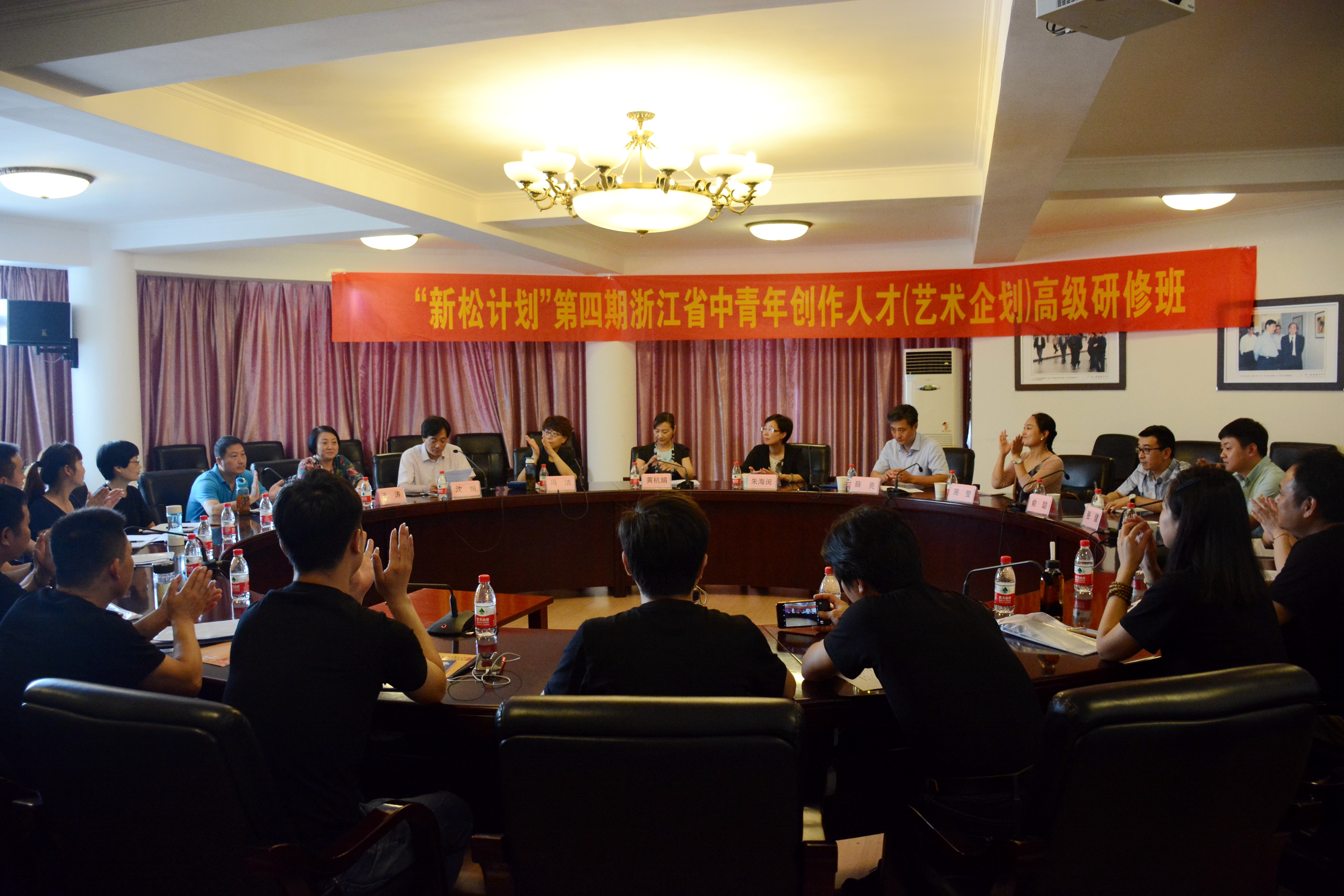 7月5日,“新松计划”第四期全省中青年创作人才(艺术企划)高级研修班在浙江艺术职业学院开班。本期培训班师资团队名家荟萃,主教是一级编剧、著名企划(曾任浙江小百花越剧团副团长、创意总监)冯洁,授课老师特邀著名影评人和剧评人、中英文双语作家周黎明,中国文化艺术策划专家、中国人民大学文化艺术策划研究所副所长王鹏,北京皇城艺术品交易中心董事长、中国演出家协会常务理事胡月明,中国戏曲学院国际文化交流专业创始人之一、教授曹林中共北京市委《前线》杂志社副总编辑、《北京文化创意》杂志主编陈秋淮,中国戏曲学院艺术传媒学院副院长、中国艺术管理教育学会常务理事于建刚,以及上海大剧院总经理张笑丁、上海艺动天下文化传播有限公司总经理许霈霖、上海戏剧学院导演系教授季强、钱江晚报副总编吴蒂,钱江浪花文化艺术有限公司总经理陆湘汉、著名制作人周国清、夏茂恬等学界和业界的著名专家学者。培训对象为全省专业文艺院团院团长、企划营销负责人等。