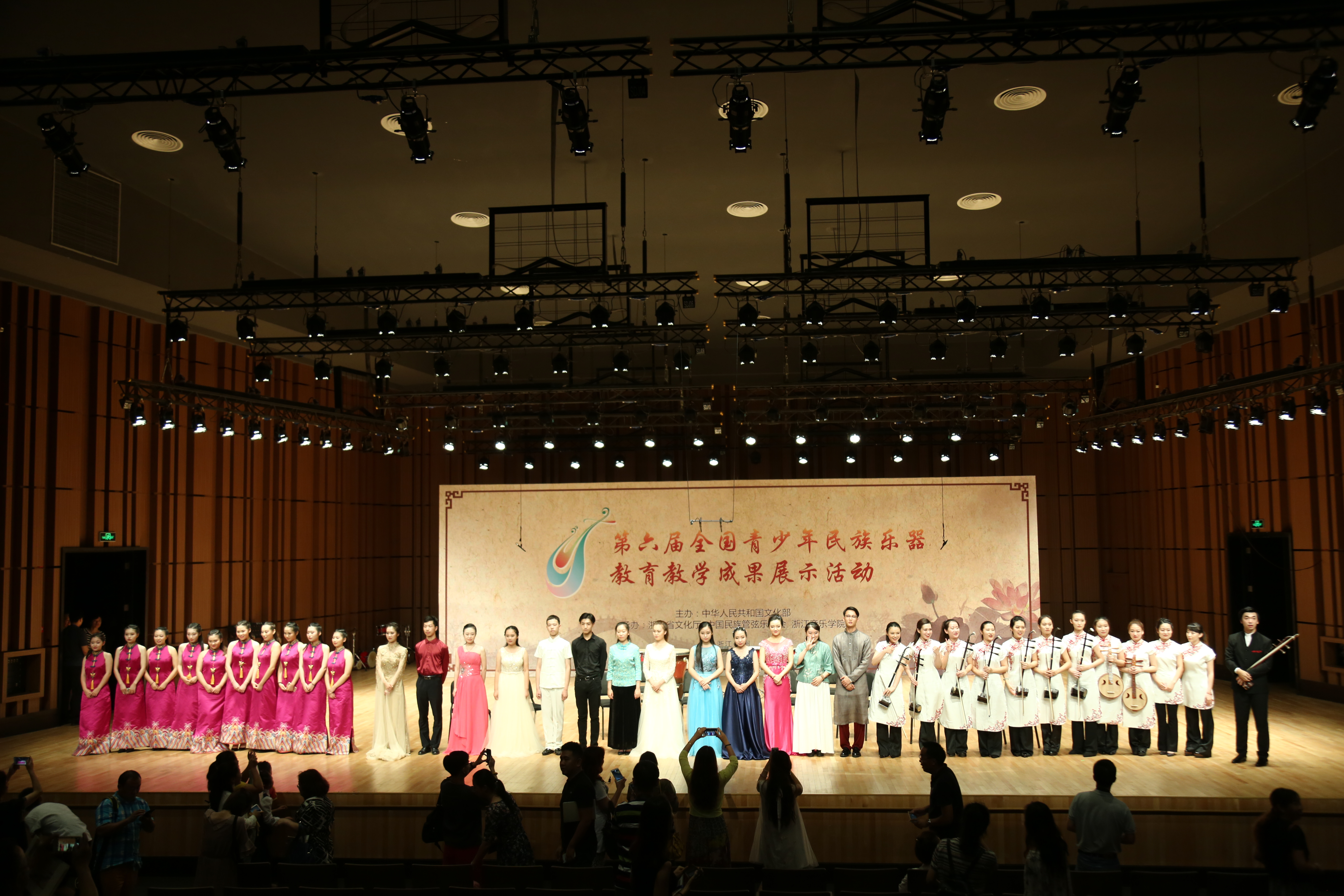本次展演由文化部主办,浙江省文化厅、浙江音乐学院和中国民族管弦乐学会承办。全国青少年民族乐器教育教学成果展示活动的前身为“文华艺术院校奖”全国青少年民族乐器演奏比赛,创办于2002年,3年一届,已经成功举办了五届。十几年来推出了一大批优秀民族乐器演奏人才,对我国的专业民族器乐教育产生了广泛而深远的影响。在2015年的全国性文艺评奖改革工作中,出于对中华优秀传统文化传承和发展的考虑,民族乐器演奏比赛项目以成果展示活动的形式予以保留。这项活动的参与对象涵盖本科、高职、中职等各层次民族器乐专业在校学生,突出一线教师的地位和作用,从展示内容到组织形式都有着鲜明的教学属性。转型后民族乐器展示活动淡化了竞争和评比,更加注重专业交流、教学示范和成果展示,更加凸显了最初举办这一活动的初衷和本质。