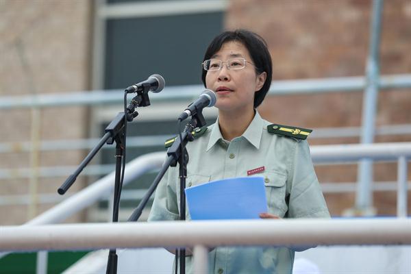 典礼在庄严的升国旗仪式中拉开帷幕。朱海闵作开学典礼暨军训动员讲话,她首先代表浙艺全院师生员工对浙江警察学院的领导及全体教官表示诚挚的感谢,同时对跨入浙艺学习的300多名新同学致以热烈的欢迎和衷心的祝贺。她讲到,同学们所就读的戏剧影视表演、音乐表演和舞蹈表演等专业一直是学校的品牌,是浙江省的重点专业和优势特色专业,戏曲表演(越剧)专业还被文化部、教育部和国家民委评定为首批“全国职业院校民族文化传承与创新示范专业点”,2017年学校成功入选了浙江省优质高等职业院校建设计划。她希望同学们尽快融入浙艺大家庭,以浙艺前辈名师和群星璀璨的优秀毕业生们为榜样,在浙艺开启梦想,在学艺的同时培养自己良好的政治素质、道德品质、法治意识和行为习惯,培育自己积极健康的人格和良好心理品质,热爱党热爱祖国热爱人民,自觉践行社会主义核心价值观,不断增强文化自觉和文化自信,成为一名有家国情怀、社会责任和真才实学的合格人才。朱海闵对新生军训提出了几点要求:尊重教官,严格训练,战胜困难;思想上高度自觉,行动上雷厉风行;要坚决服从管理,自觉锤炼毅力意志,以一名军人的标准严格要求自己;团结协作,互帮互助,以饱满的精神和认真的态度参加军训,取得入学第一课的优异成绩。