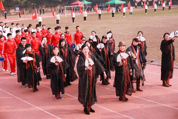 开幕式上进行了广播操和团体操的比赛。广播操比赛中,同学们用整齐规范,有力到位的动作展现了浙艺学子积极进取的精神风貌。团体操的比赛堪称精彩绝伦,各系学子精心准备,结合专业发挥了各自的特长,有舞蹈,有RAP,展现了艺术与体育的糅合之美和综合类艺术院校学子的多才多艺。同学们的激情,温暖了这个冬日。相信即使在若干年后,浙艺田径场上的每一幕都是值得回忆的青春。