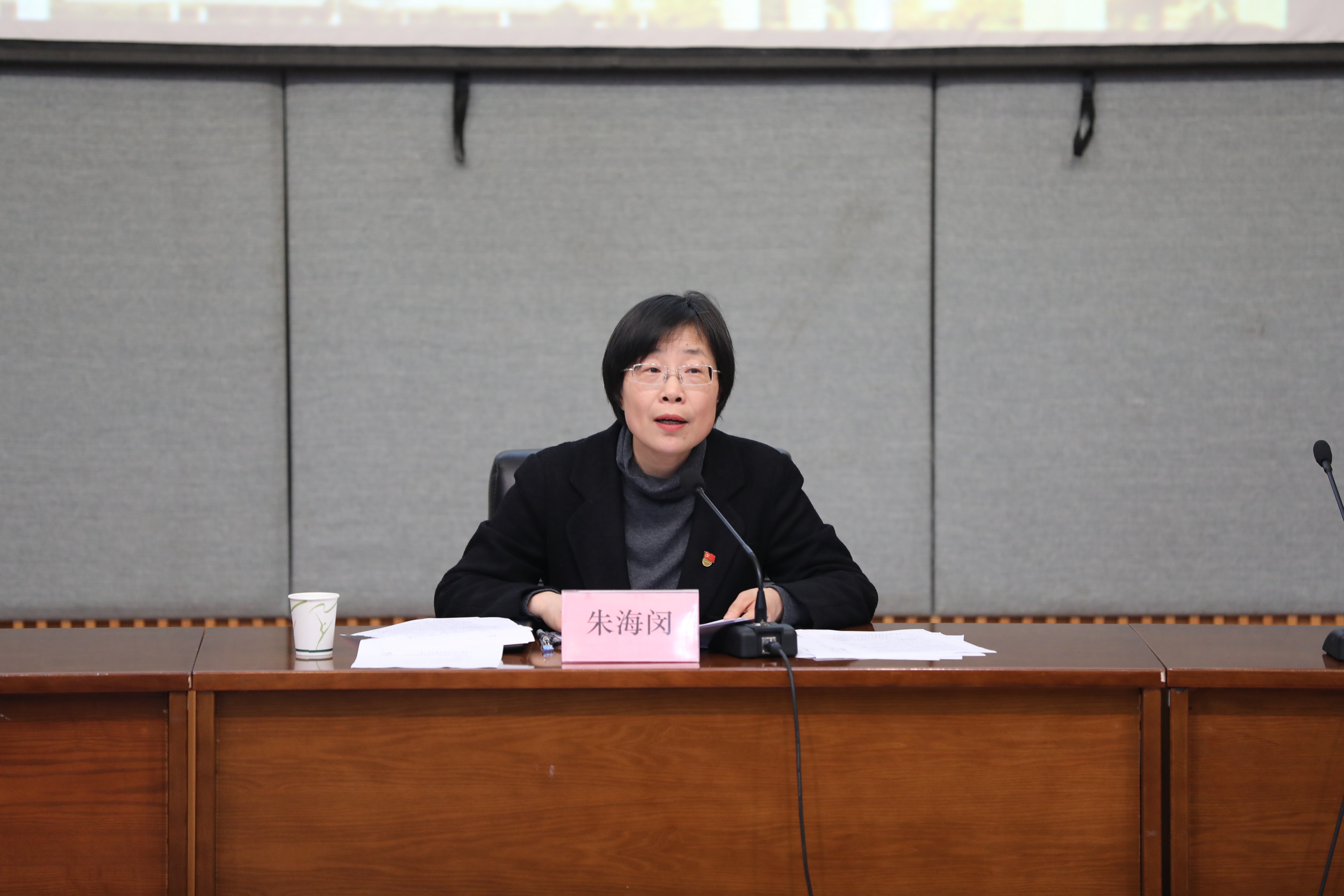 朱海闵代表学校领导班子作2017年度工作总结并作个人述责述德述廉述法报告,其他领导班子成员个人述责述德述廉述法情况以书面形式进行了报告。倪赛英对2017年度学校领导班子和领导人员考核测评工作作了布置和说明。