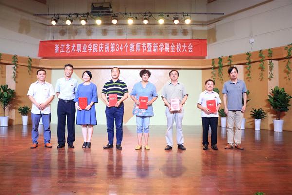 9月19日下午,浙江艺术职业学院庆祝第34个教师节大会暨新学期全校大会在音乐厅举行。校领导朱海闵、黄杭娟、夏开堂、章轲、沈恒、徐芳、沈军甫、王涛、马向东出席,全院教职工参加大会。党委副书记夏开堂主持大会,他代表校党委领导班子向过去一年来在各个岗位上辛勤工作、默默付出,为学校发展和学生成长成才做出不懈努力的全体教职工送上亲切的问候和诚挚的感谢。