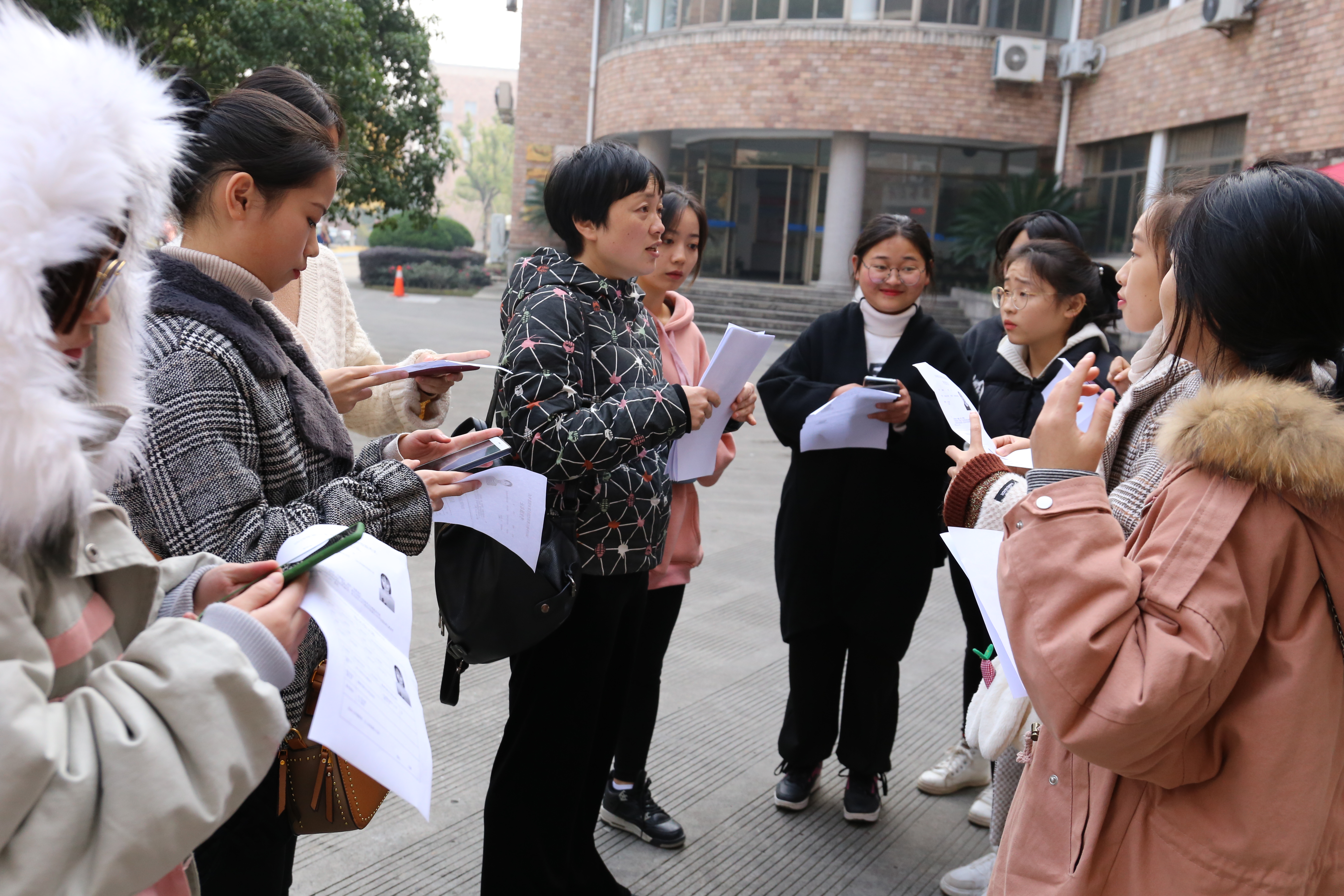 秋冬时节的浙艺校园,金黄色格外醒目,中心广场两旁的银杏树将落叶洒落在脚下依然青青的草坪和蓝色的步道上,给冬日里的校园增添了几分温暖。今天(30日)是考生们报到的日子,一进校园,本次考试的导示牌便映入眼帘,交代了报到、候考、考场等具体信息。早晨刚开始时报到人数还不多,临近中午时出现了高峰期。考生们带着身份证、职业技能考试报名证等证件进行现场确认。