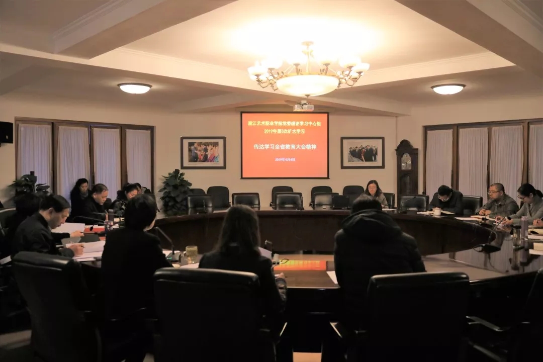 4月4日,浙江艺术职业学院党委理论学习中心组举行扩大学习会,传达学习省委书记车俊在全省教育大会上的讲话精神和省委副书记、省长袁家军等领导所作的工作部署精神,并结合学校实际畅谈学习体会,进一步提出贯彻大会精神的工作举措。党委书记朱海闵主持学习会。党委班子成员、副处级以上干部参加学习。