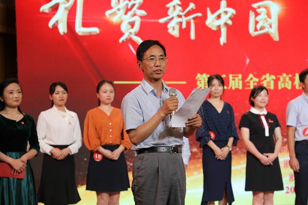 6月10日下午,以“礼赞新中国,奋斗新时代”为主题,第五届全省高校微型党课大赛决赛在浙江艺术职业学院举行。大赛由中共浙江省教育厅委员会主办,浙江省教育技术中心协办,浙江艺术职业学院承办。省教育厅党委副书记干武东、省教育厅党委委员、组织处处长应方彩,浙江艺术职业学院党委书记朱海闵等出席。来自全省高校党员师生代表近400人现场观看了比赛。