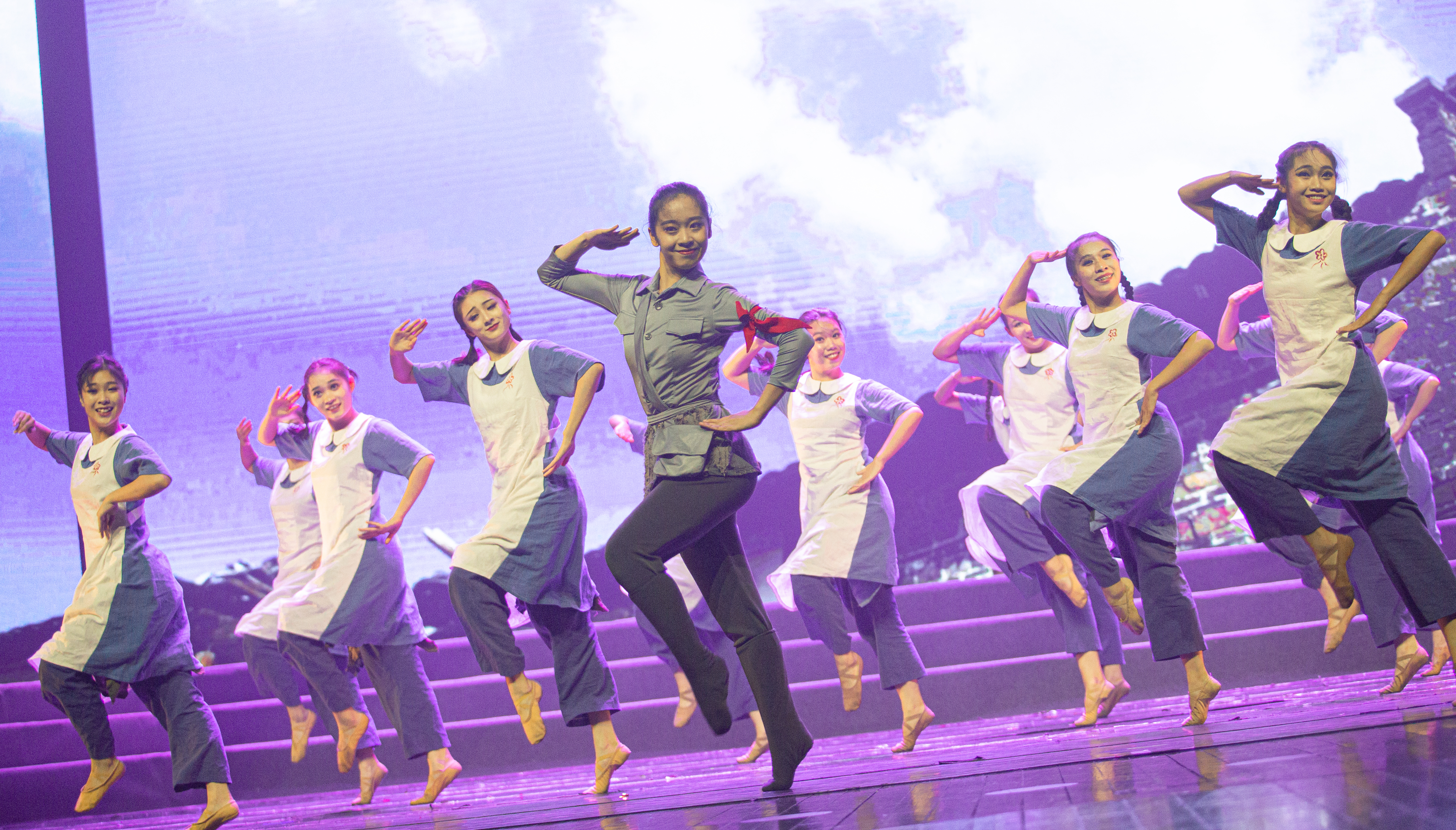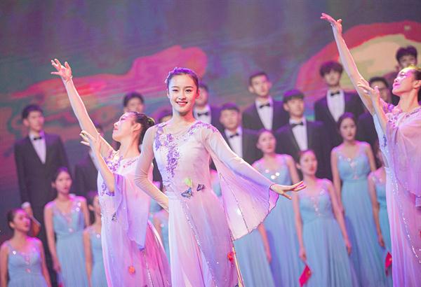朱卓凡、沈贝贝男女声二重唱《不忘初心》,“向往你的向往,幸福你的幸福”,深情表达了对祖国的爱和祝福。韩紫娟、李猛等歌曲联唱《我爱你中国》《天耀中华》、丁倩文等女声四重唱《问春》,悠扬的歌声献上了对祖国在前进道路上再创辉煌的美好祝愿。音乐系陈利宏等师生联合演奏的打击乐《新龙腾虎跃》,鼓声震撼,让观众血液沸腾。我校经典剧目、舞蹈系获得全国“桃李杯”舞蹈大赛一等奖的群舞《畲家女儿拍》节奏欢快,展现了别样的民族风情。歌唱家、浙艺实践部副主任陈芬芳演唱了《中国进入新时代》,用歌声弘扬社会主义主旋律,展现了中国在未来道路的美好前景。