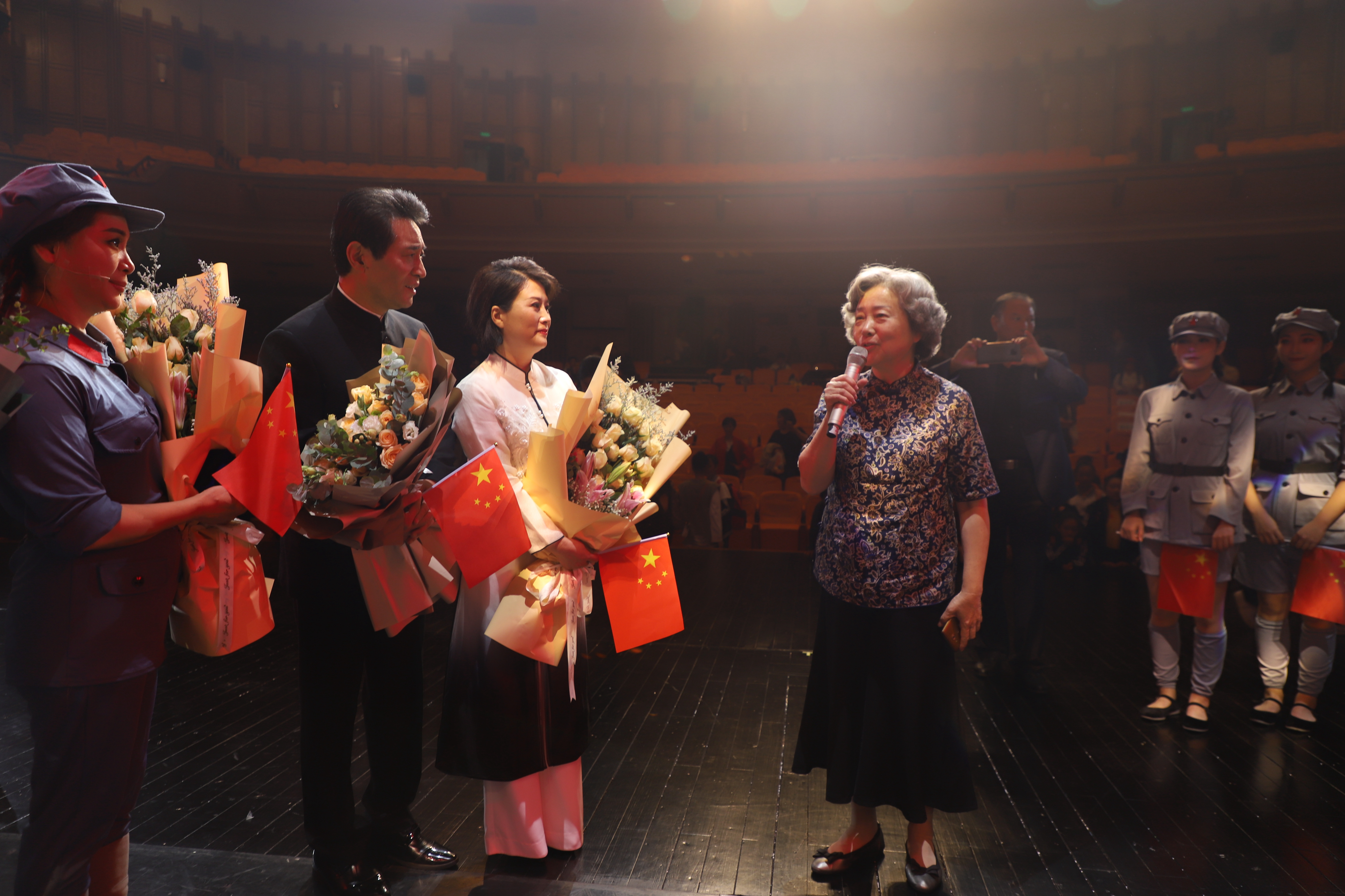 学校结合主题教育,根据“课程思政”建设要求进行主题策划,精心打造了一场精彩的“唱诵会”,于10月17日晚在学校实验剧场举行。“唱诵会”既是一堂生动的“课程思政”课,更演绎出别具特色的“浙艺好腔调”,将毛泽东经典诗词以越歌、京歌、声乐和朗诵的形式进行精湛演绎、完美融合,让观众在艺术享受中受到爱国主义教育。原省政协副主席盛昌黎看完演出后评价:“演出非常好,看得我心潮澎湃。我看了很多台戏,浙艺的演出以诗歌、戏剧吟唱为主要内容,效果出奇的好!演唱会节目创意很好,师生们表演很好,舞美朴素大气,演出氛围很好,整台戏充满了正能量。希望能继续演下去,成为爱国主义教育的典范作品。”