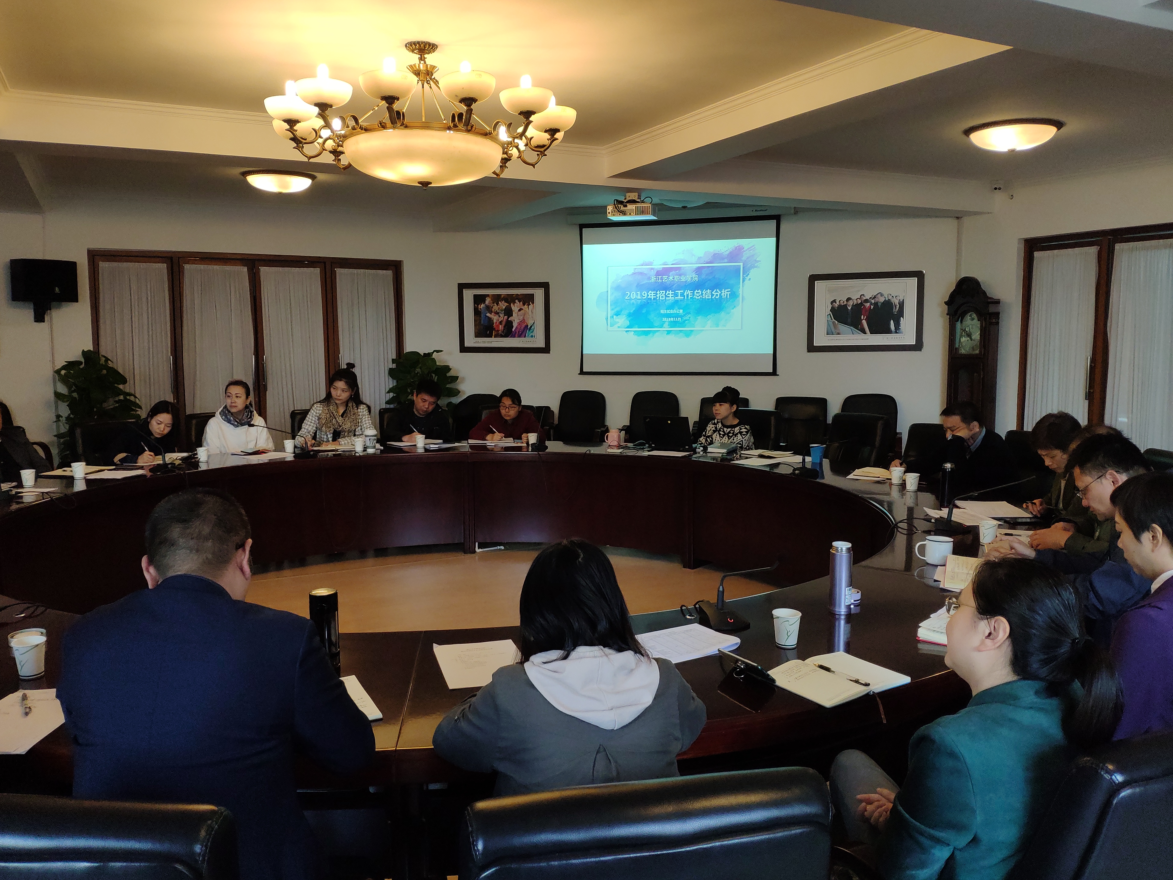 招生就业办公室负责人现场汇报了学校2019年整体招生工作情况,分别从报考情况、录取情况、招生计划及执行情况、录取数据分析、报到数据分析以及招生工作中存在的问题等多个方面进行了全面的回顾和总结,并结合2020年招生大背景对新一年招生工作目标、工作任务提出了设想和思路。