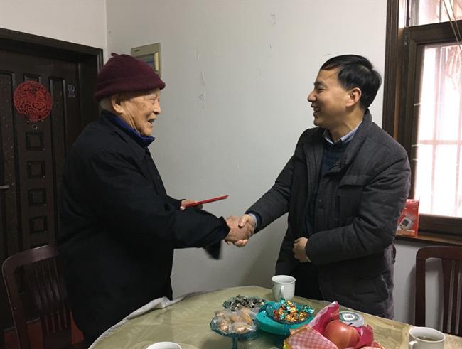 校党委班子成员夏开堂、沈军甫、支涛、王涛、马向东,分别走访慰问了离休干部林雅冬、管继华和退休老教师张正堃,退休教师孙零、陈幼亭,离休干部王媛、原浙艺副校长杨淑琴,原浙艺副校长张荣泉、退休教学督导孙仁之,离休干部陈玉祥、退休干部郝朝生等。相关职能部门负责人和各系部党总支负责人分别走访慰问了学校离退休老同志王季纯、姚桂芳、俞珍珠、赵逸仙等。