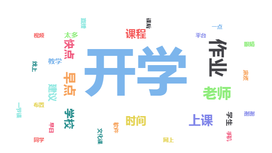 通过对学生反馈建议关键词的分析,发现学生们的心声主要是“早点正式开学”和“作业太多”。很多学生反映,在校学习专业课程的效果更好,希望早点返校学习。